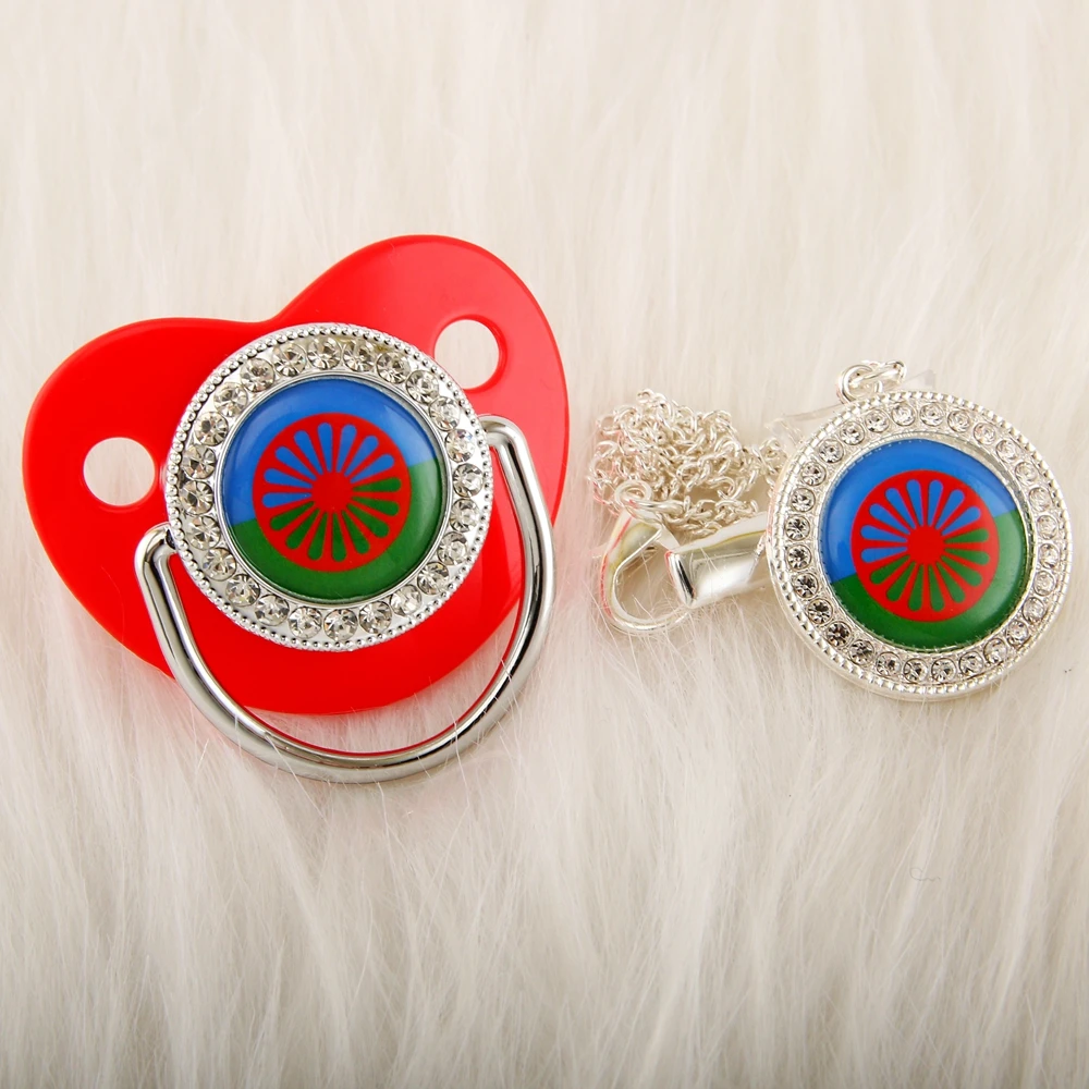 Цыганская римская Серебряная детская пустышка с зажимом на цепочке Романи Римский Флаг Тема Новорожденный ребенок пустышка Соска