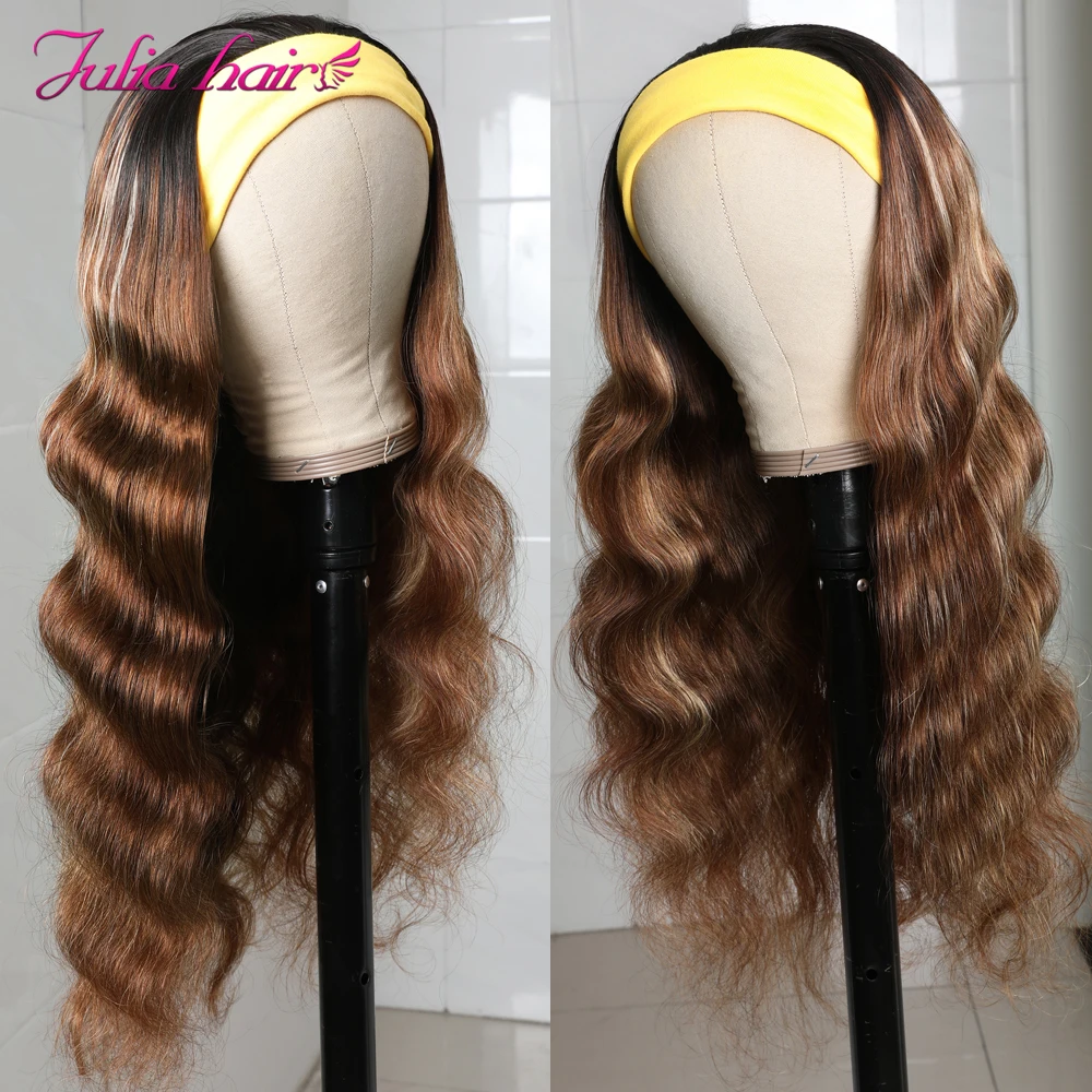 Волна тела Омбре выделить парик с головной повязкой бесклеевой 1B 99J перуанский парик из человеческих волос для женщин Джулия влажные и волнистые повязки на голову шарф парики