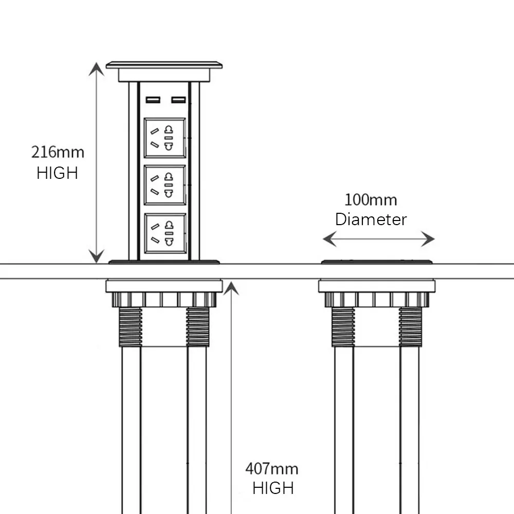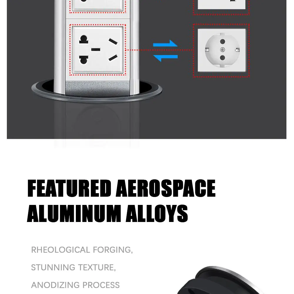 Скрытый дизайн, когда розетка используется, она поднимется и открывается, когда она не используется, она будет опускаться ниже рабочего стола.