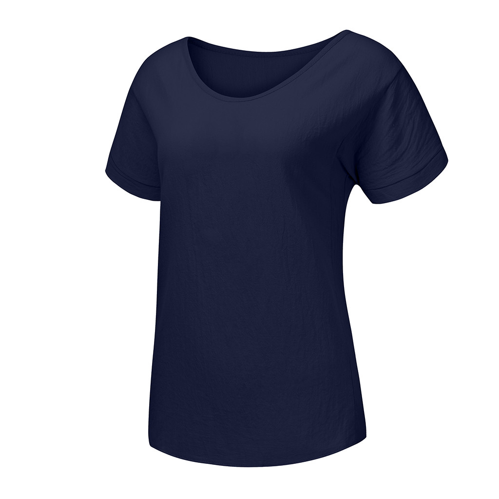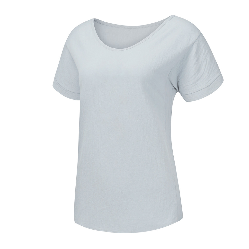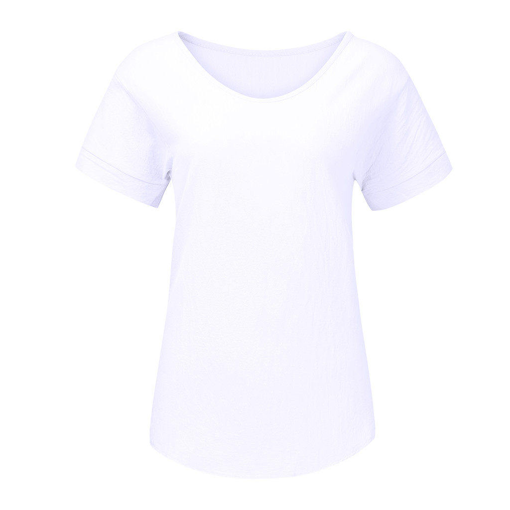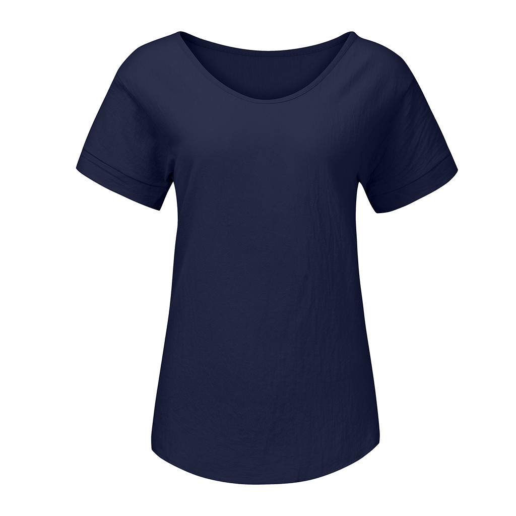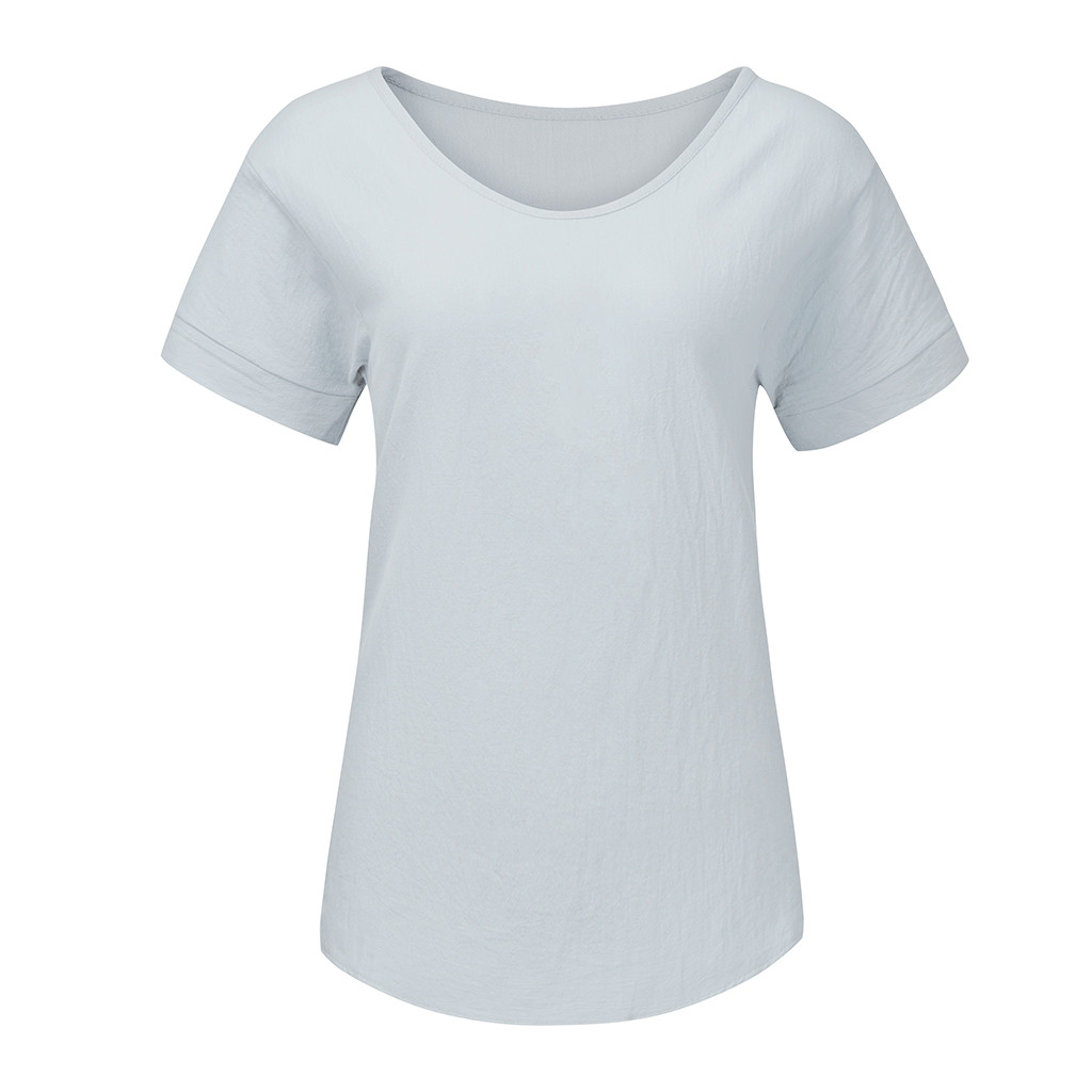 Женская Повседневная футболка из хлопка и льна с круглым вырезом со сплошным коротким рукавом