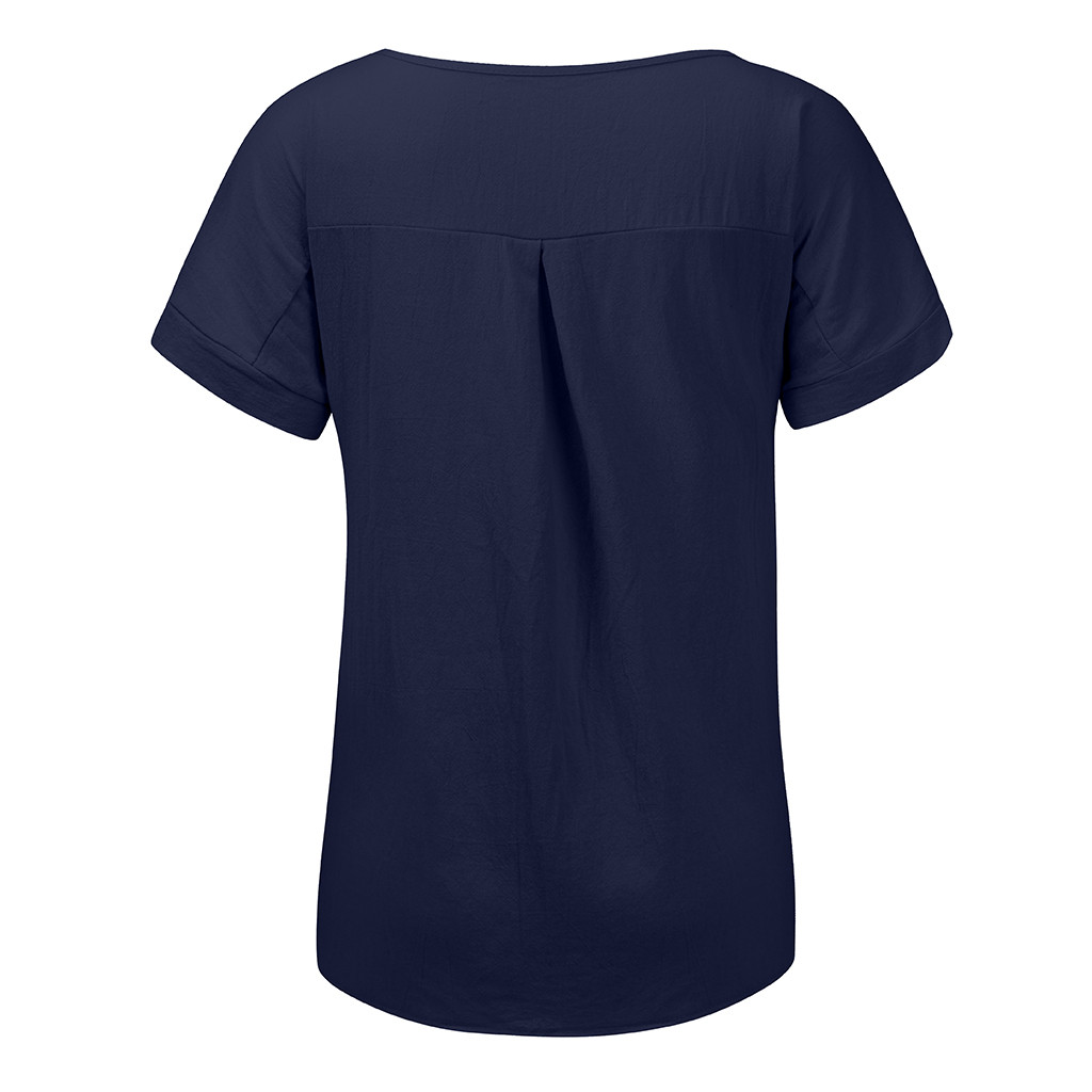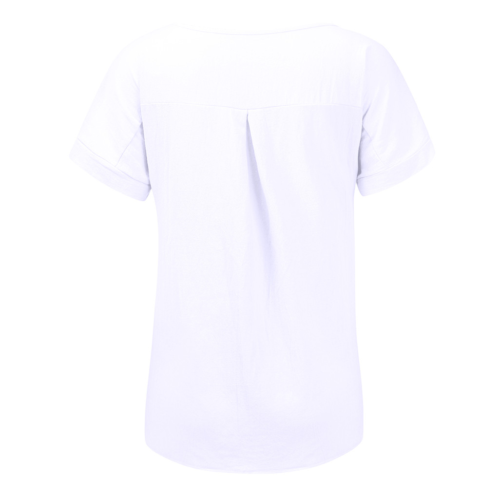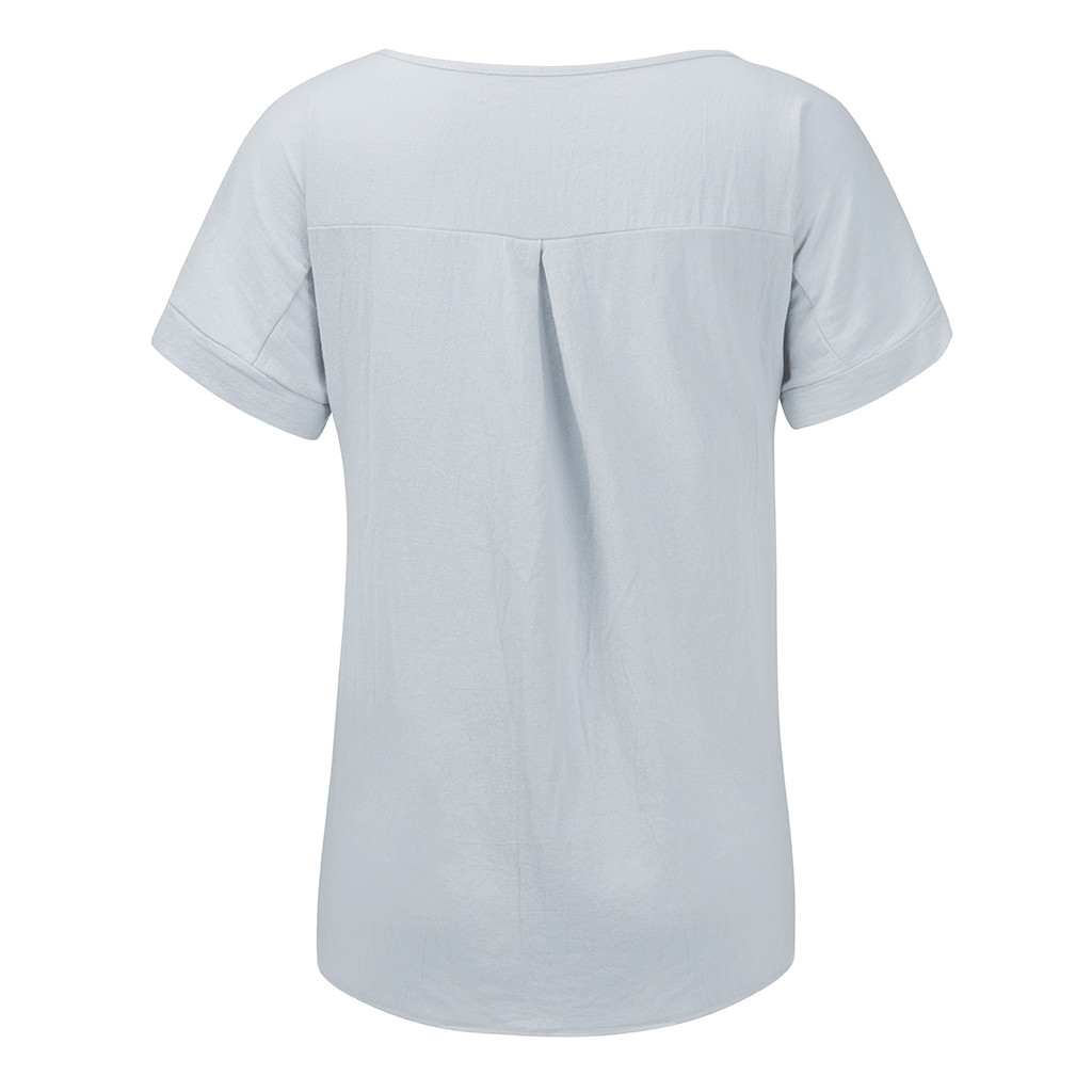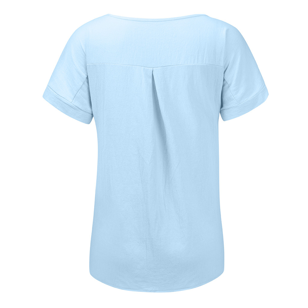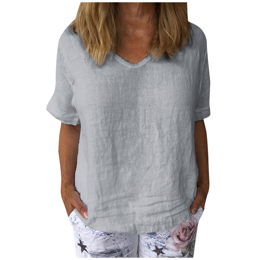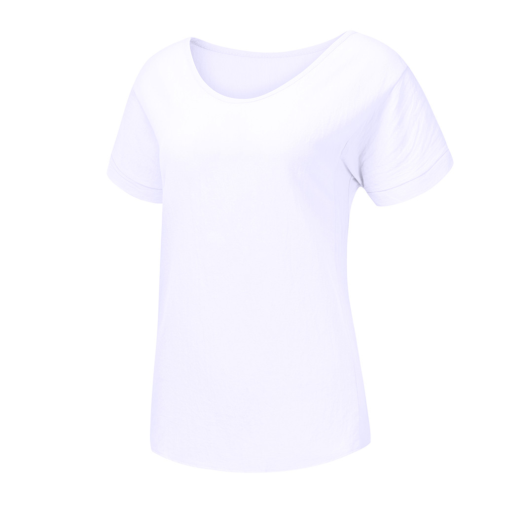 Женская Повседневная футболка из хлопка и льна с круглым вырезом со сплошным коротким рукавом