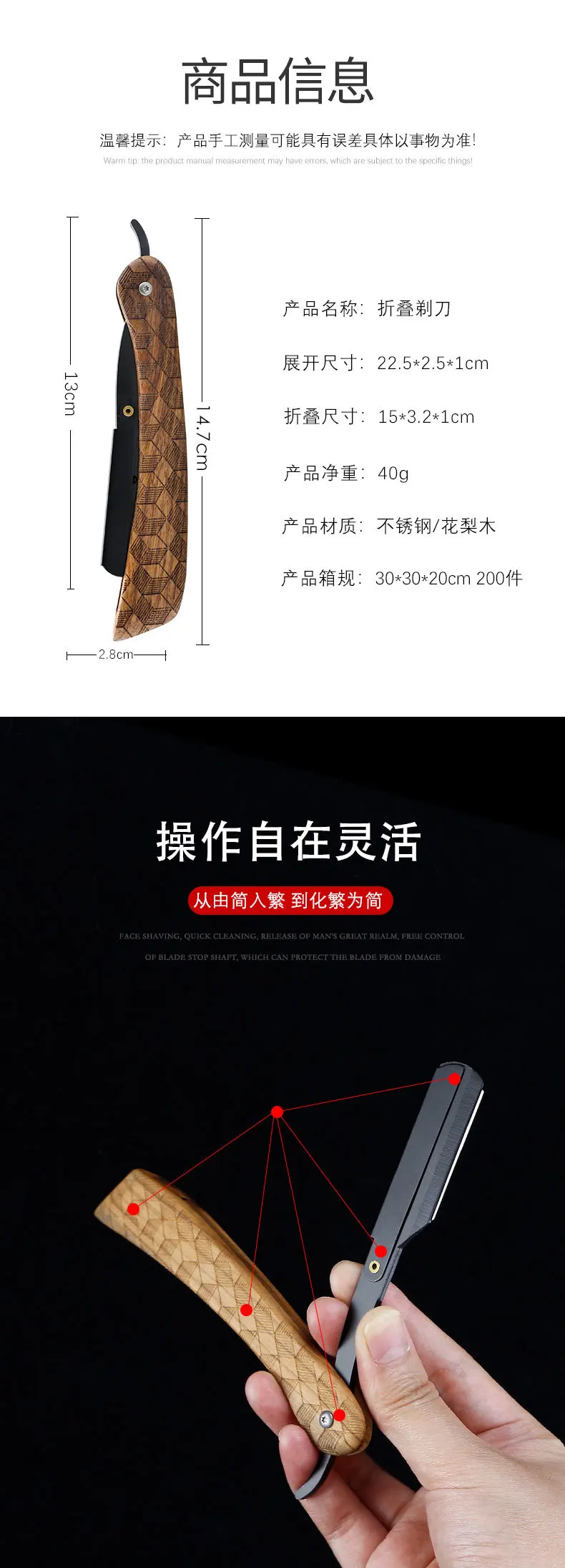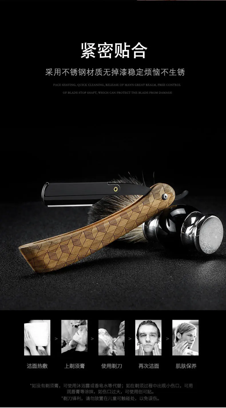 Палисандр клетчатая нержавеющая сталь складная ручка для бритья деревянная ручка для бороды прямая Бритва для мужчин ручной инструмент для бритья волос