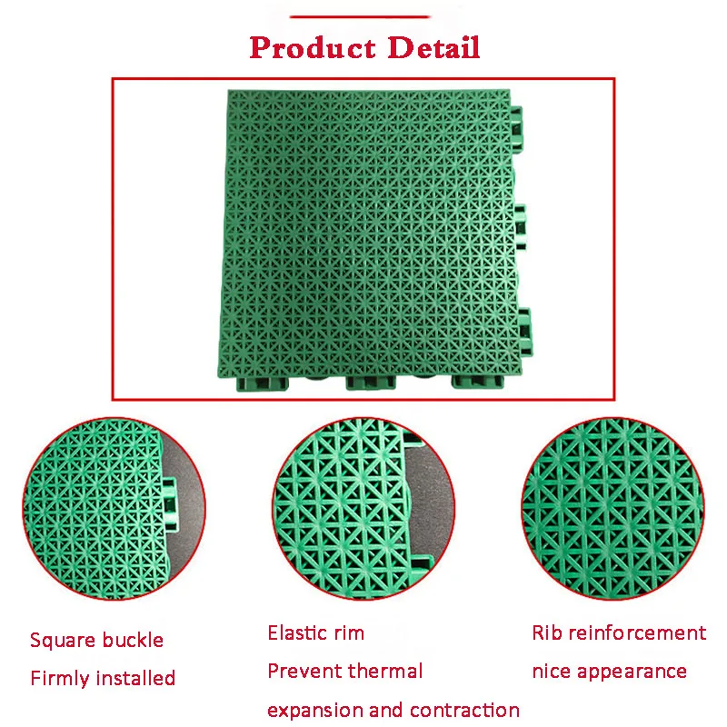2. Разнообразные функции: баскетбол, теннис, волейбол, бадминтон, настольный теннис, гимназия, футбольное поле в помещении, хоккей на роликах, гандбол, детский сад, развлечения Плаза, бассейн, парк, места для пожилых людей и т. д., только нужен плоский цемент или подходит для мощения на асфальтовом грунте; Может использоваться в помещении и На открытом воздухе