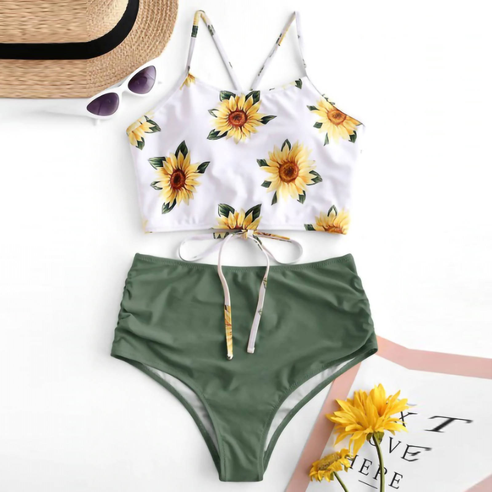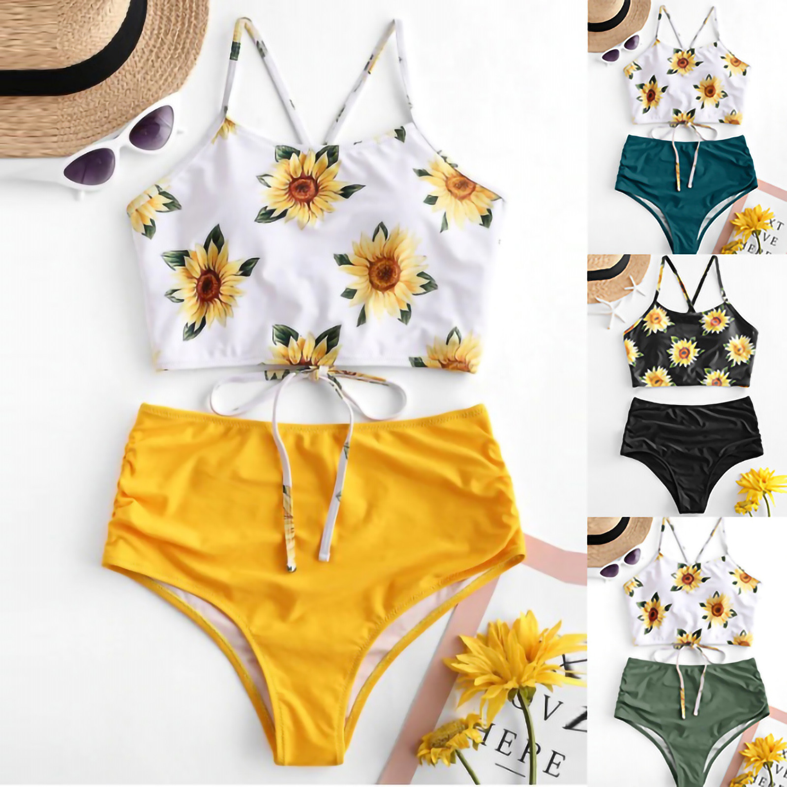 Женский раздельный купальник бикини разных цветов с высокой талией