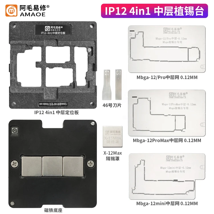Набор трафаретной станции AmaoE 18 10 в 1 среднего слоя для iphone X XS XSMAX 11 12 13 14 Series Pro/Max Mini