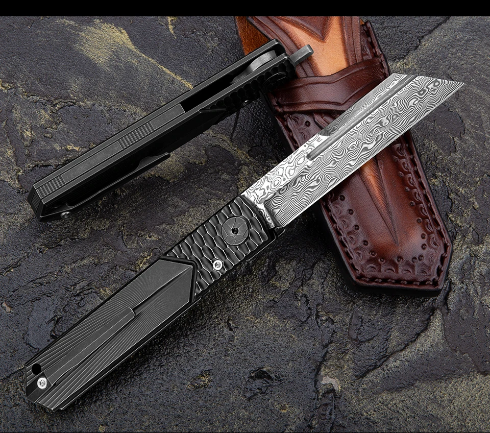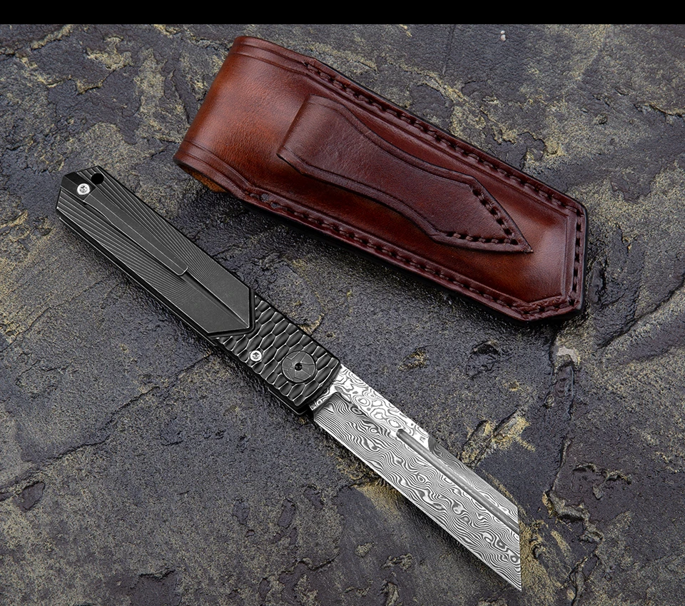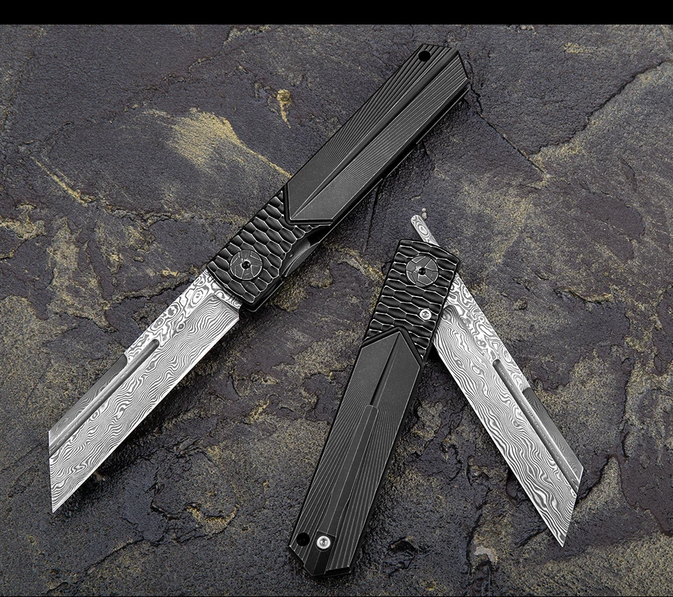 Дамасская Современная титановая ручка Higonokami с зажимом