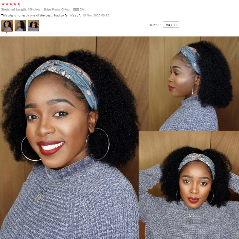 Парик с головной повязкой человеческие волосы парики для женщин 180% афро кудрявые бразильские Remy полный машинный парик с головной повязкой натуральный цвет KRN