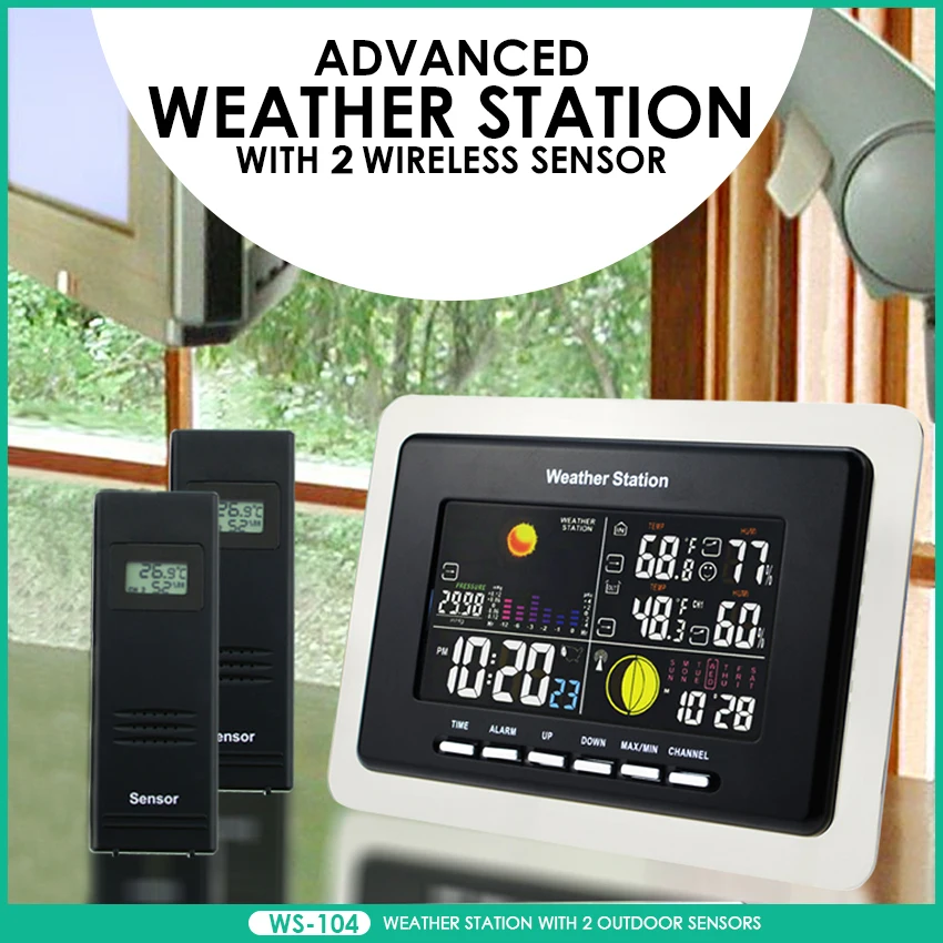 WEA-289: большой цветной дисплей метеостанция с 3 датчиками