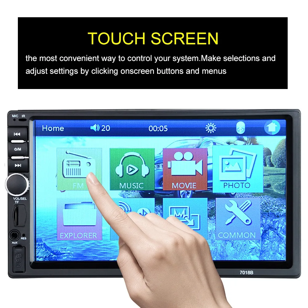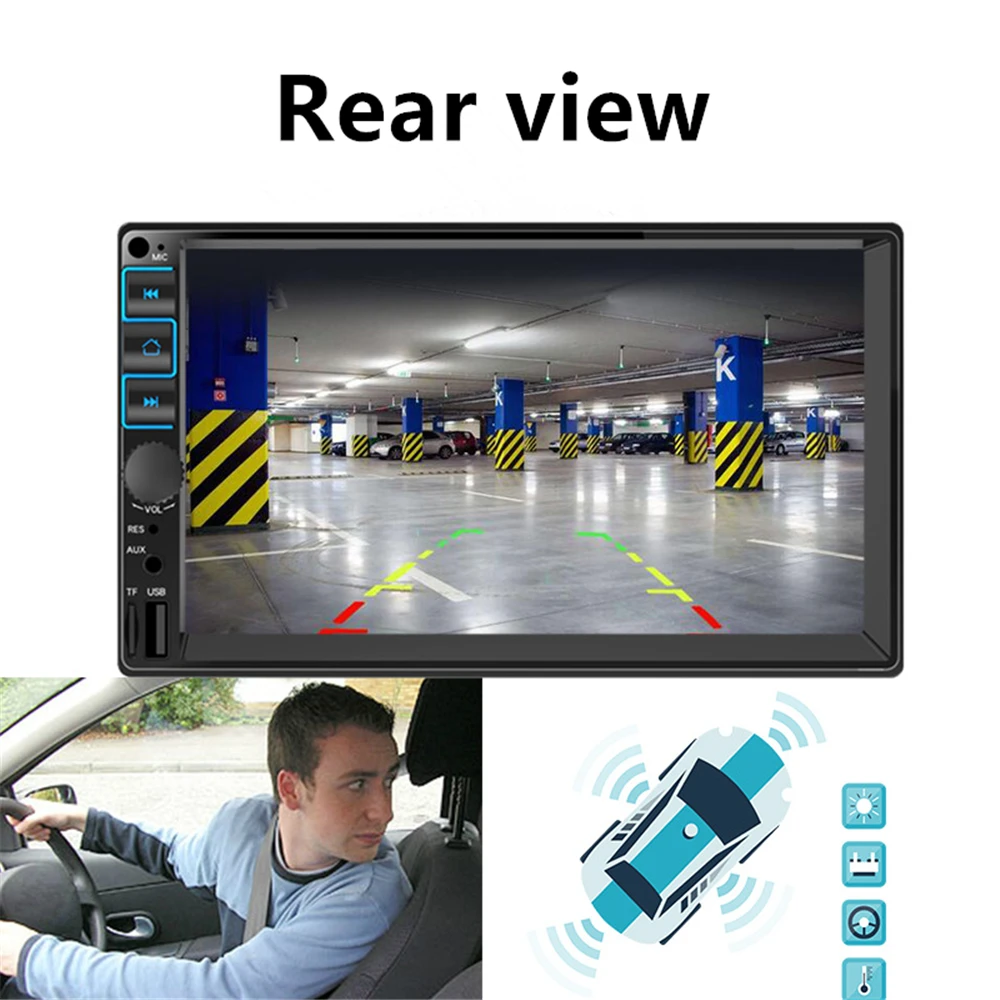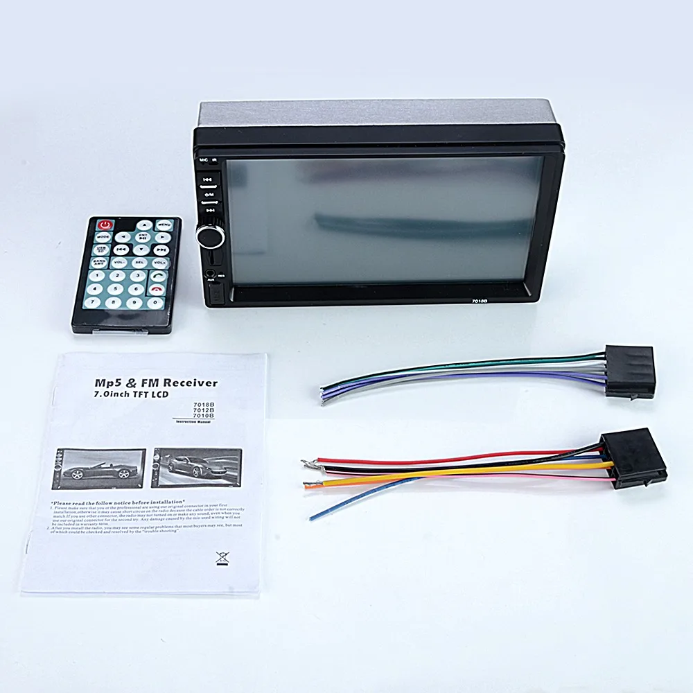 7 дюймов HD сенсорный экран + Bluetooth + FM/MP5 + USB порт/TF разъем карты + Aux Вход Особенности:1. 7 дюймов 2 din HD автомобильное радио MP5 плеер с цифровым сенсорным экраном.2. Поддержка беспроводного bluetooth-соединения и функции ручного бесплатного телефонного звонка.3. Поддержка FM и встроенный вход Aux.4. Поддержка TF карты (до 32 Гб) слот и стандартный USB интерфейс.5. Поддержка функции ввода камеры заднего вида.6. 24 часа цифровой дисплей часы и дата.7. Может заряжать мобильный телефон или другие usb-устройства.8. Красочные подсветки кнопки питания для украшения в вашем автомобиле. Характеристики:Основная функция: MP5, USB/TF интерфейс, FM, Bluetooth, вход задней камеры, Aux InРазмер экрана: 7 дюймовРазрешение экрана: 800*480Языки OSD: английский, китайский, русскийФормат видео: RMVB/RM/FLV/3GP/MPEG/DIVX/XVID/DAT/VOB/AVI/MP4Формат аудио: MP3/WMA/WAVФормат изображения: JPGВыходная мощность усилителя/Кол-во канала. : 45 Вт * 4Интерфейс: USB/TF/AUX INВходное напряжение: 12 ВВерсия Bluetooth: V3.0Пароль сопряжения Bluetooth: "0000" Общие сведения:Цвет: черныйТип: 2 DinРазмер установки: прибл. 18*10,3*6,5 см/7*4 * 2.6inРазмер посылка: 20*15*12 см/7,9*6*4,7 дюймовВес посылка: 680 г/24 унции Посылка:1 * хост мультимедийного плеера1 * кабель питания1 * Руководство пользователя на английском языке Примечание:1. Этот Автомобильный мультимедийный плеер совместим со всеми автомобилями. Проверьте размер установки.2. Установка требует небольшого знания электронных продуктов. Пожалуйста, установите его с помощью профессионала.3. Если вы не уверены, подходит ли эта модель для вашего автомобиля или нет, вы можете связаться с нашей службой поддержки клиентов.
