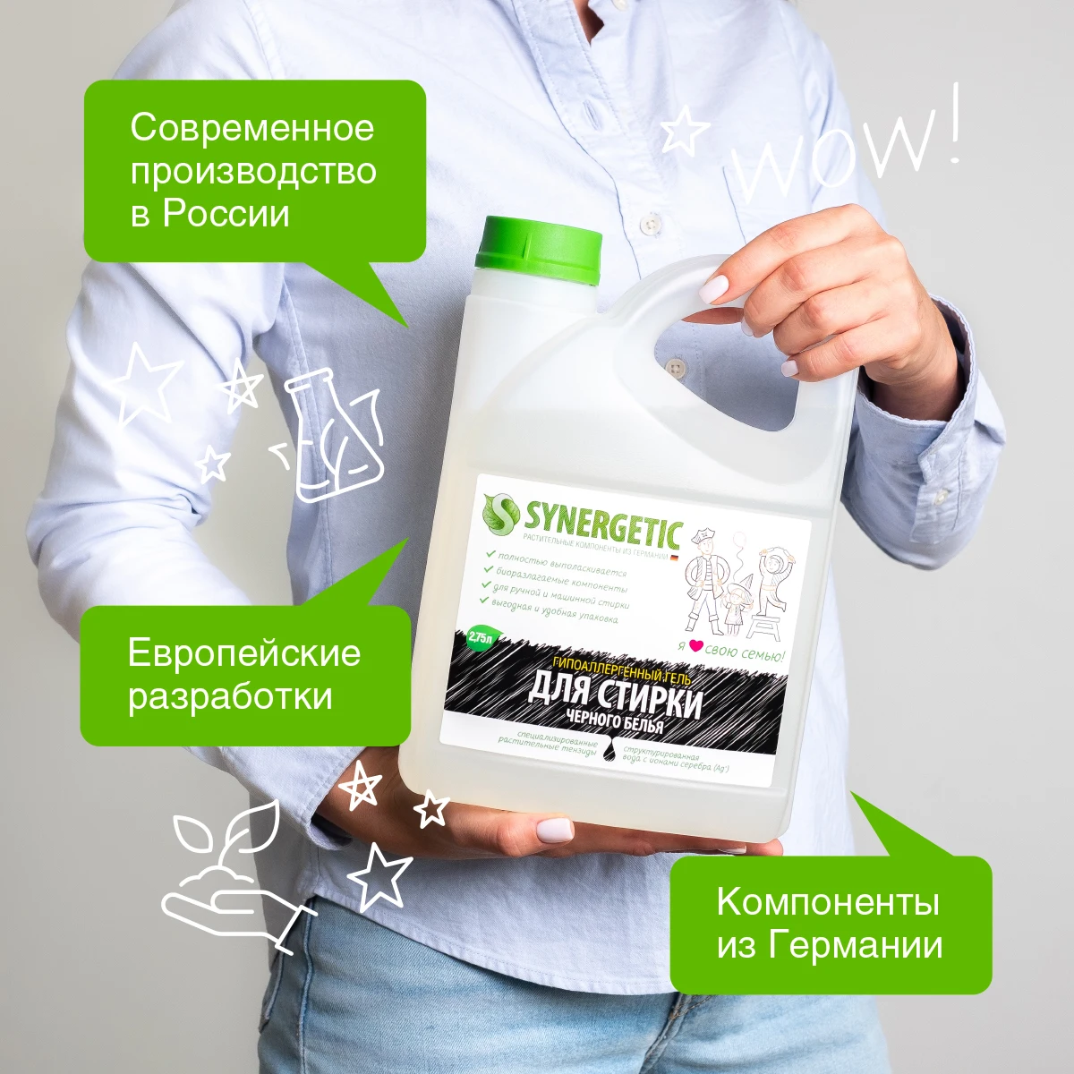 Гипоаллергенный гель для стирки черных тканей SYNERGETIC – это экологичное, безопасное и эффективное средство. Гель выполаскивается из волокон ткани на 100%, подходит для машинной и ручной стирки при температуре 20-40°С. Мягкие биоразлагаемые тензиды и натуральное мыло, полученные из растительных масел, справляются с самыми распространенными загрязнениями даже в жесткой воде. Эффективные зеленые хелаты смягчают воду и помогают средству справиться даже со стойкими загрязнениями. Средство содержит оптимально сбалансированный комплекс веществ, удаляющих неорганические загрязнения с хлопковых и синтетических тканей, сохраняя первоначальную яркость черной одежды. Специальные добавки предотвращают повторное оседание загрязнений на волокнах хлопковой ткани и максимально деликатны к черному пигменту одежды. Гипоаллергенная отдушка на основе эфирных масел бергамота, лимона, грейпфрута, сантала придает средству аромат свежести и подходит даже для людей с чувствительной кожей. Состав: Water, Sodium Laureth Sulfate, Soap, Sodium Citrate, Coco Glucoside, Tetrasodium Glutamate Diacetate (GLDA), Fatty Alkoxylated Alcohol, Glycereth-7 Cocoate, Sea Salt, Polycarboxylates, Polyvinylpyrrolidone, Nonallergic Parfume with Natural Oils.