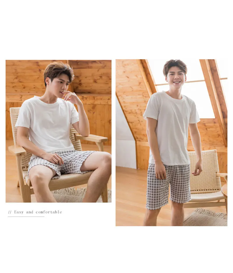 Мужские хлопковые газовые брюки клетчатые трикотажные штаны для сна женские