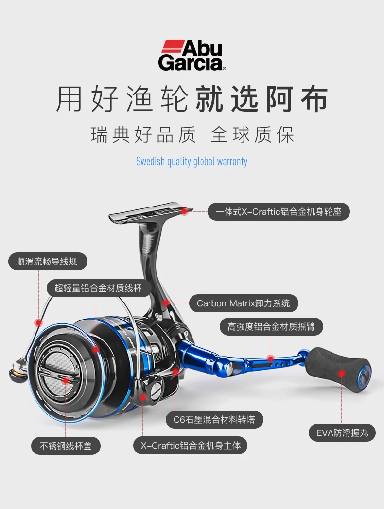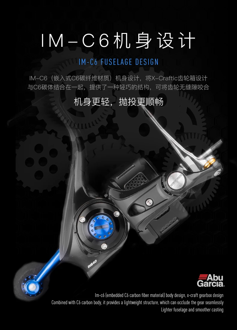 IM-C дизайн корпуса. Цельное X-craftic сиденье колеса из алюминиевого сплава, Сверхлегкая катушка из алюминиевого сплава Кнопка катушки из нержавеющей стали Система сотрудничества с углеродной матрицей C6 графит смешанный материал вращающийся ротор, Высокопрочный коромысло из алюминиевого сплава с ЧПУ Нескользящая ручка EVA Катушка имеет наклонную конструкцию порта, которая больше подходит для бросания. Подшипники из нержавеющей стали 6 + 1 HPRC Ввинчиваемая конструкция ручки Ультралегкая конструкция, вес модели 3000 всего лишь 210 г.
