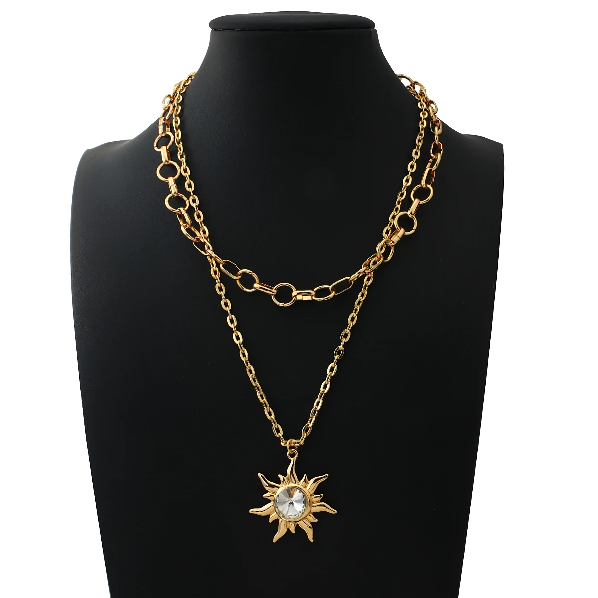 Наименование товара: ожерелье-чокер с подвеской от солнца в богемном стиле, двойной слой кристаллов, золотой цвет, металлические цепочки, ожерелья для женщин, ювелирные изделия 2021