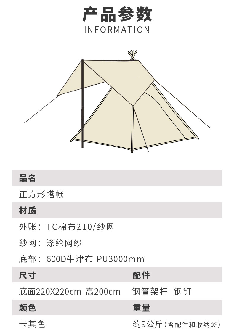 Цветная 1 хлопковая палатка цвета хаки 220*220*200 см