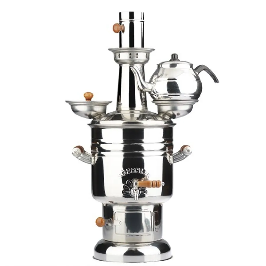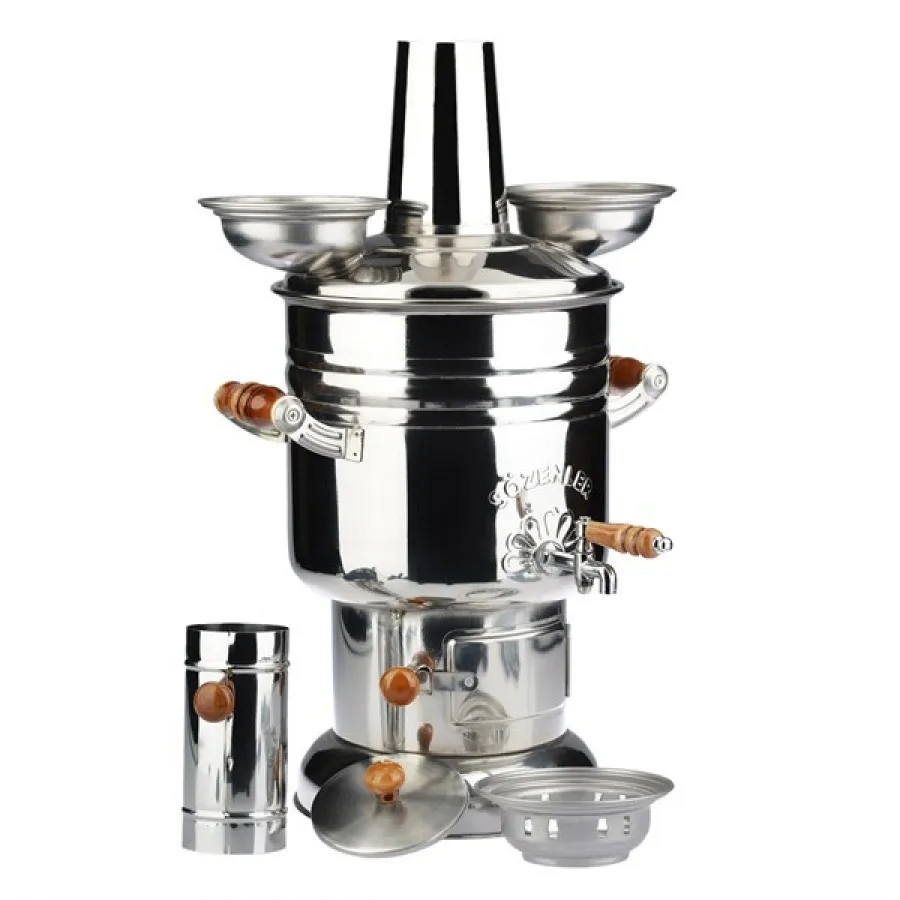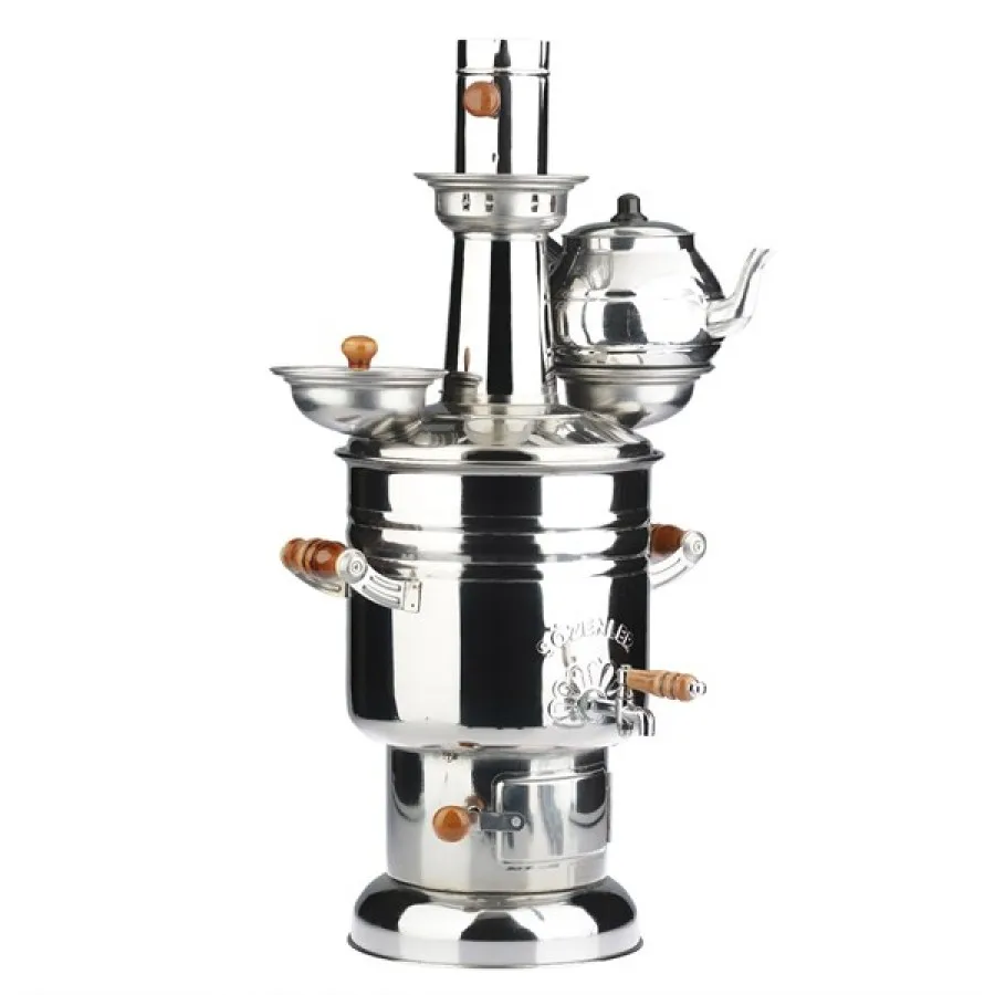САМОВАР НА ДРОВАХ для чая турецкий с керамическими ручками. Объем 6 л. (Хромированная сталь)