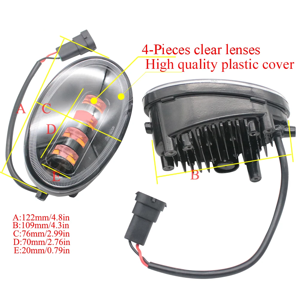 Comes with Cut-Glass Lens White and Yellow LED Better visibility. Ensure driver's safety in foggy, rainy, dusty or snowy weather.