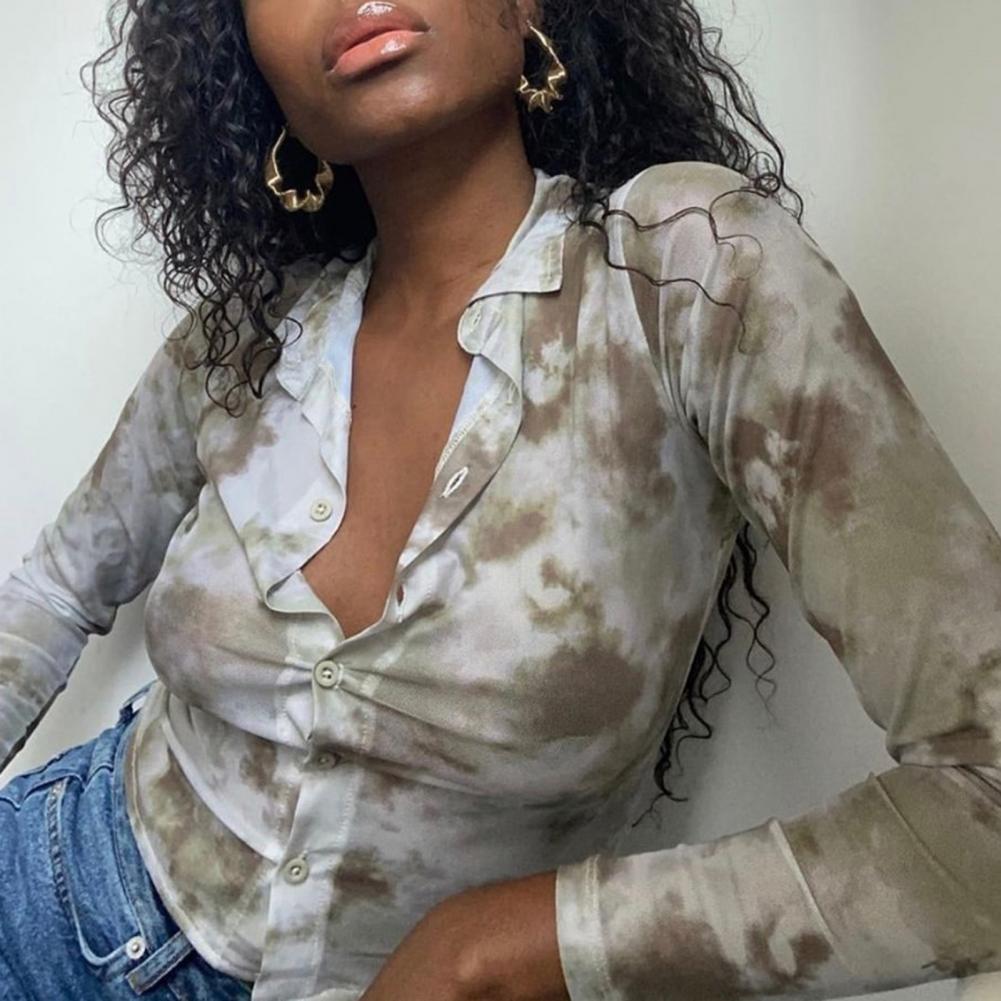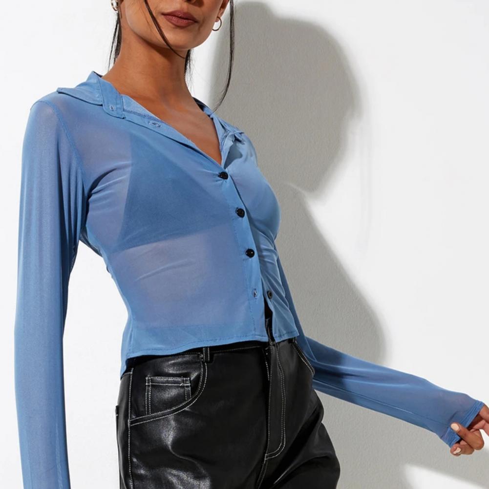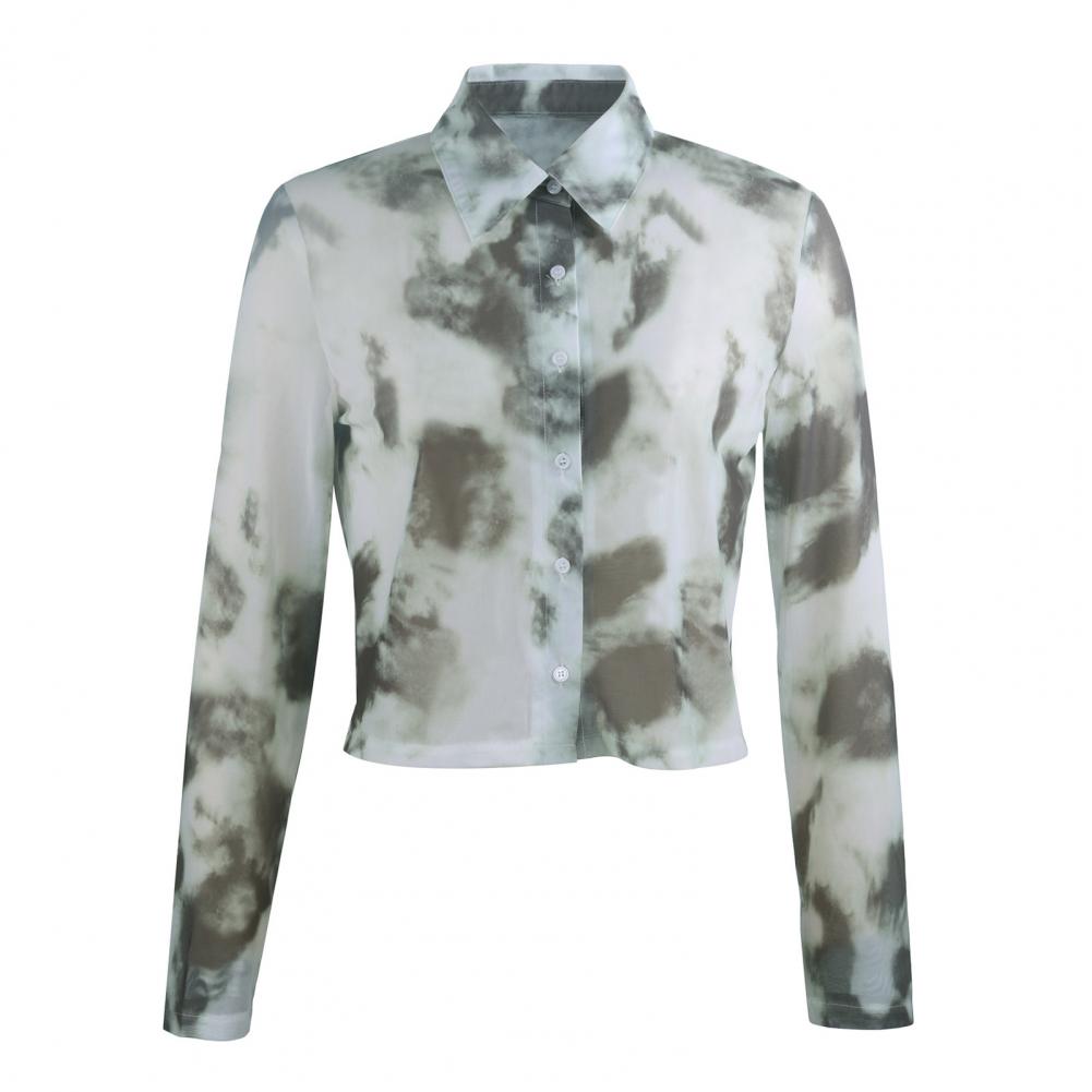Просвечивающая рубашка делает вас горячим сексуальным. Эта рубашка с пуговицами, длинными рукавами и отложным воротником держит вас в тренде.