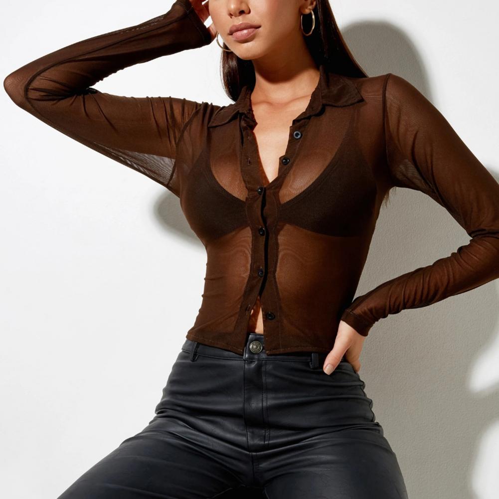 Летние blusas 2021 шоколадный y2k прозрачный сетчатый топ перспективная сексуальная взрослая рубашка для женщин Прямая поставка