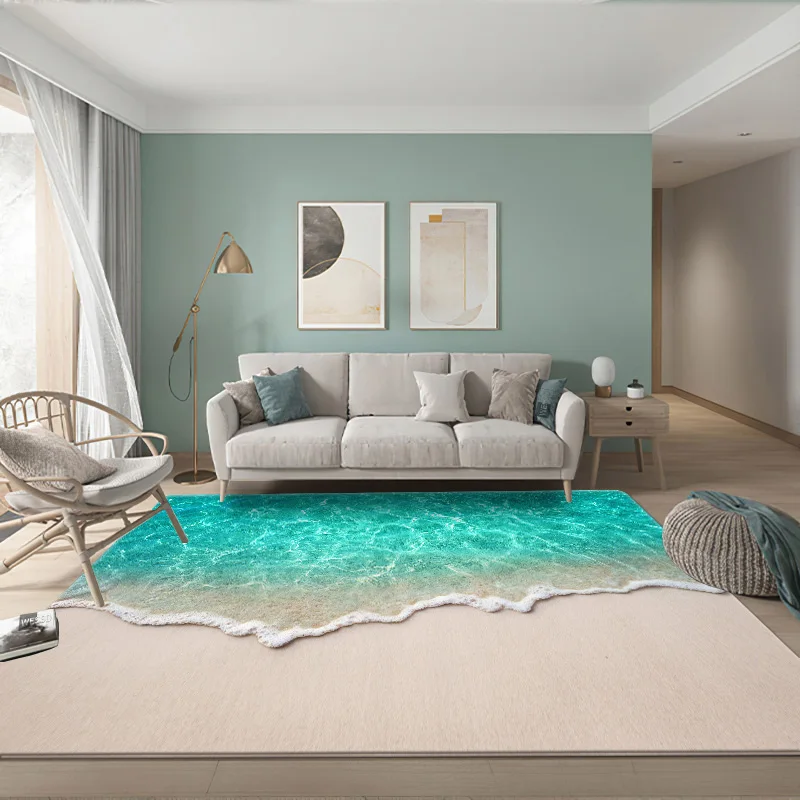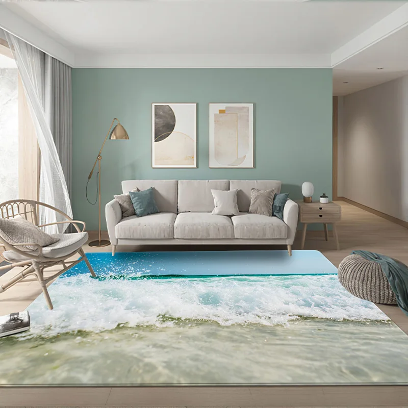 Название: пляжный ковер с морскими волнами для гостиной, 3D Ландшафтный напольный коврик с принтом, фланелевая губка, большой коврик для ванной комнаты, декоративный ковер для спальни, мягкий