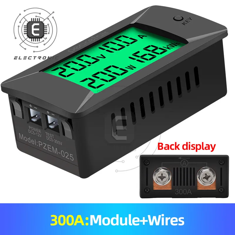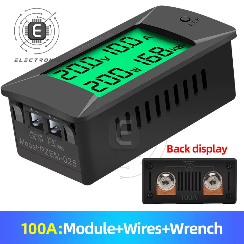 Измерьте напряжение постоянного тока, ток, мощность, энергию и дисплей с ЖК-дисплеем.