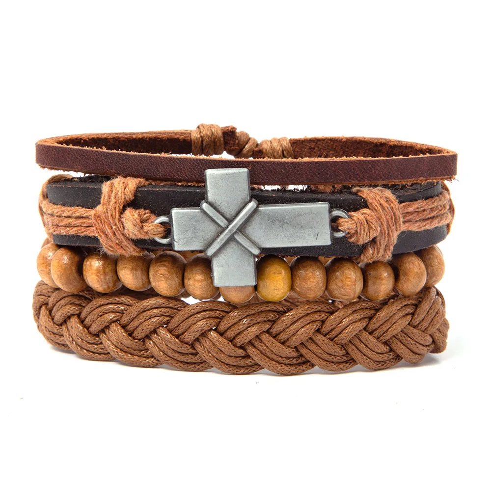 Винтажный этнический племени крест очарование ссылка сплав ручной работы тканые мужские кожаные браслеты женские DIY браслет мужские ювелирные аксессуары