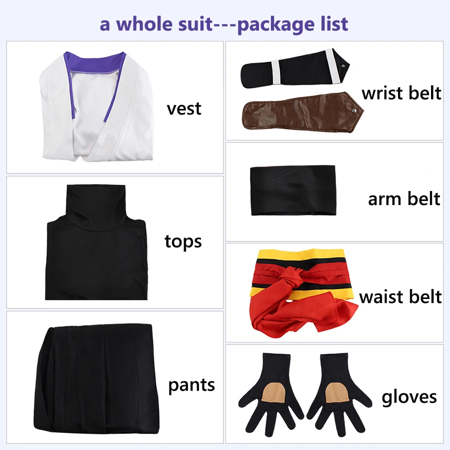 Весь комплект: жилет, топы, брюки, ремень на запястье, ремень на руку, пояс на талию, перчатки