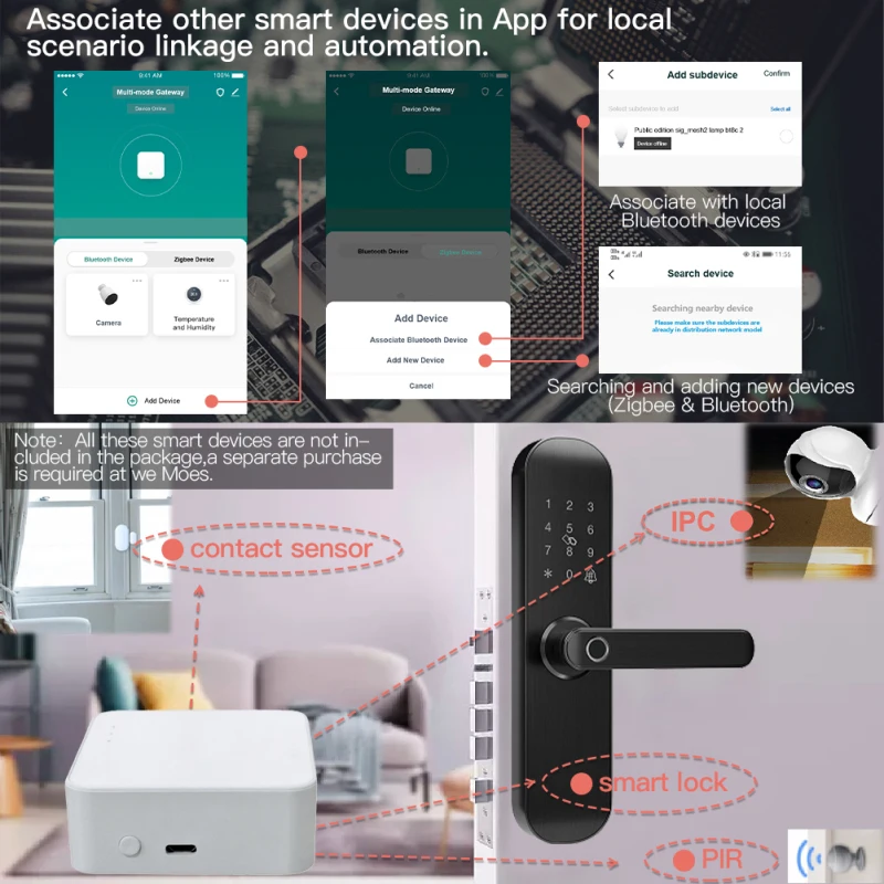 The multi-mode gateway supports Wi-Fi Bluetooth Zigbee multi-protocol communication. Bluetooth mesh (SIG) and Zigbee communication ensure stable control of 128 devices.
