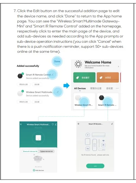 Adding sub-devices without network access and multiple sub-devices accessing the net-work at the same time