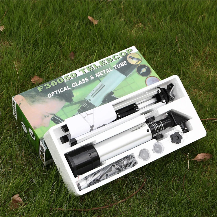 Рефракционный астрономический телескоп начального уровня с диафрагмой 50 мм и фокусным расстоянием 360 мм, отлично подходит для студентов или тех, кто заинтересован в более глубоком изучении пространства и ночного неба. При установке окуляра 1,5x Максимальное увеличение этого телескопа может достигать 90 раз, что может увеличить возможности просмотра. Легкий и портативный, этот телескоп-прекрасный подарок для тех, кто любит наблюдать за животными, наслаждаться пейзажем, путешествовать и т. д. Особенности: Рефракционный астрономический телескоп с диафрагмой 50 мм и фокусным расстоянием 360 мм, максимальная мощность 90x. Полностью стеклянная оптика с покрытием для повышения яркости и четкости изображения. 1.5X установка окуляра для увеличения возможностей просмотра. Простая сборка без необходимых инструментов. Конструкция из алюминиевого сплава, легкая и портативная, хороший выбор для студентов или тех, кто хочет узнать больше о пространстве и природе. Характеристики: Материал: алюминиевый сплав Диафрагма: 50 мм Фокусное расстояние: 360 мм Максимальное увеличение: 90x Окуляр: H6 мм, h20 мм Размер посылка: 39,7*21,7*8,7 см/15,6*8,5 * 3.4in Посылка Вес: 774g / 1.7lb Посылка: 1 * Основная труба телескопа 1 * Finderscope 1 * h6 мм окуляр 1 * H20 мм окуляр 1*90 градусов зенитное зеркало 1 * объектив с Луной 1 * 1.5X монтажный окуляр 1 * Штатив 1 * Руководство пользователя (на английском языке)