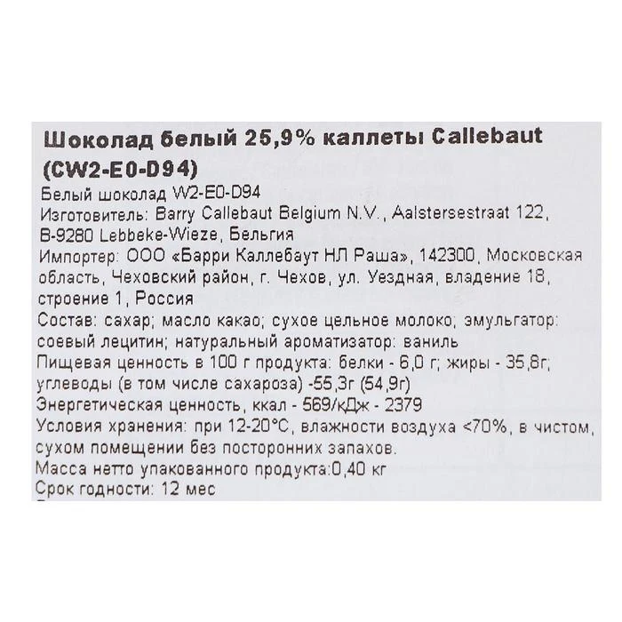 | Вид шоколада | Белый |