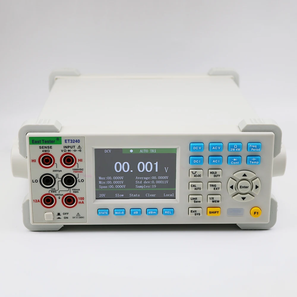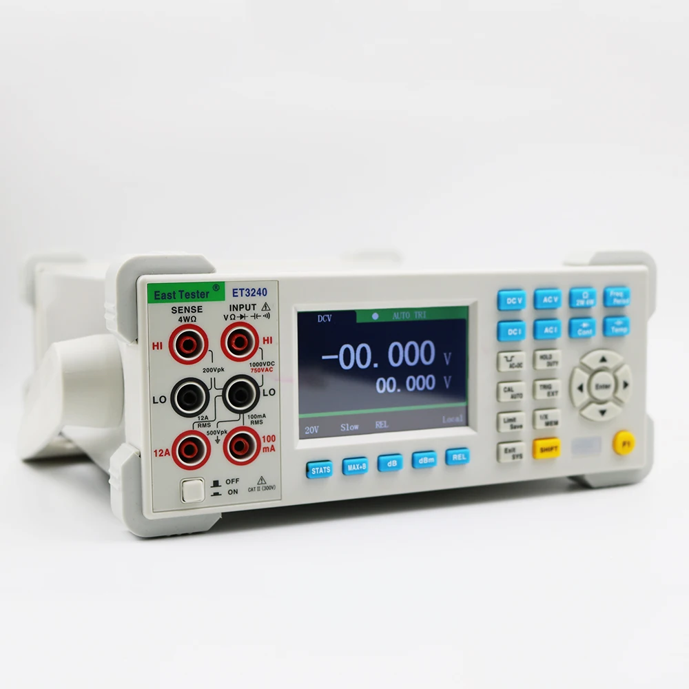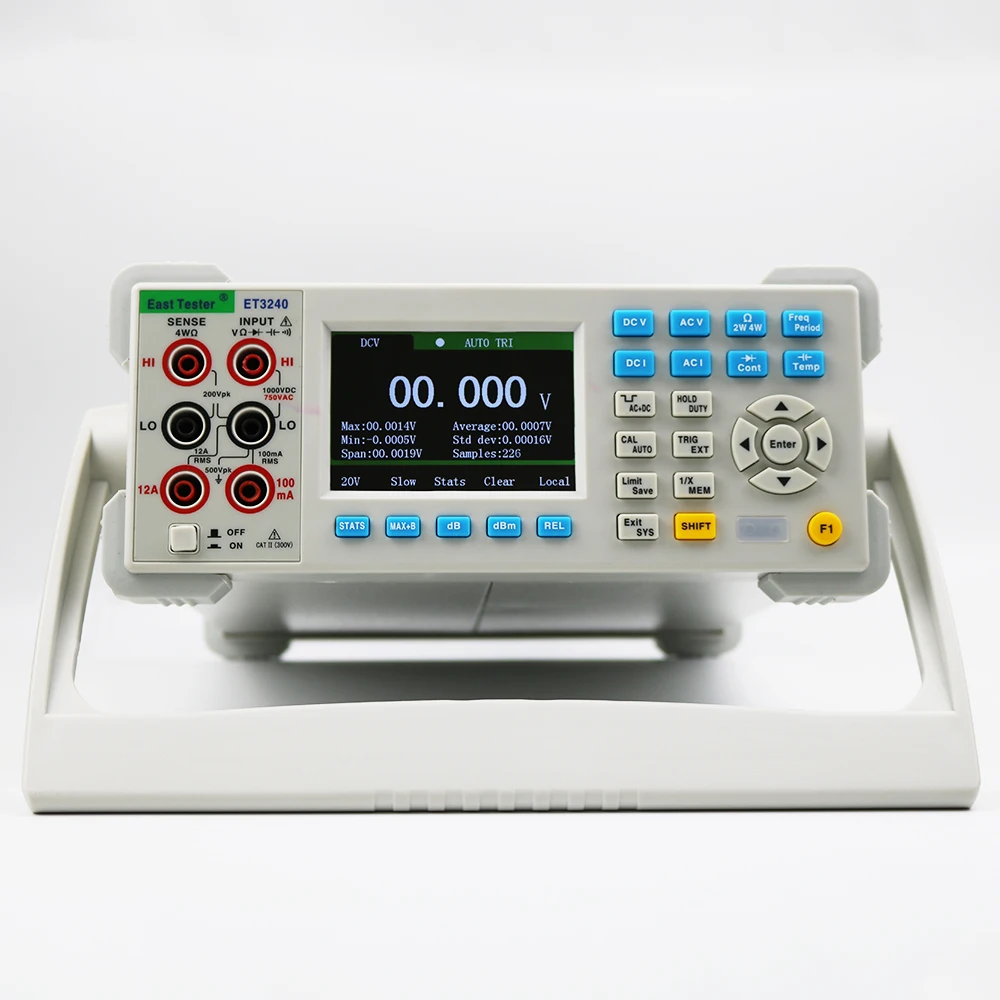 ET3240is 4 ½ цифр, 22000 отсчетов, двойной цифровой настольный мультиметр true-RMS. Чип STM32 и внешняя двойная Интегральная реклама, используемые этим настольным мультиметром, обеспечивают точное измерение и стабильную производительность. 3,5 дюймов 320*480 с высоким разрешением на тонкопленочных транзисторах на тонкоплёночных транзисторах ЖК-дисплей экрана делает четкого восприятия информации, богатого дисплея, и хороший визуальные эффекты. Настольный мультиметр питается от электричества и обеспечивает полнофункциональную, полную защиту от перегрузки. Свежий и простой дизайн с отличной производительностью делает их идеальным выбором для электриков, энтузиастов электроники, инженеров и колледжей и вузов.