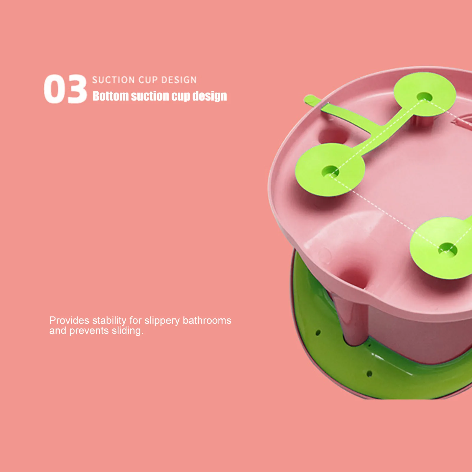 1. Подходящий возраст: Изготовлен из высококачественного пластика, без острых углов, очень гладкая, стабильная присоска, высокая несущая способность, подходит для новорожденных детей 6-18 месяцев.