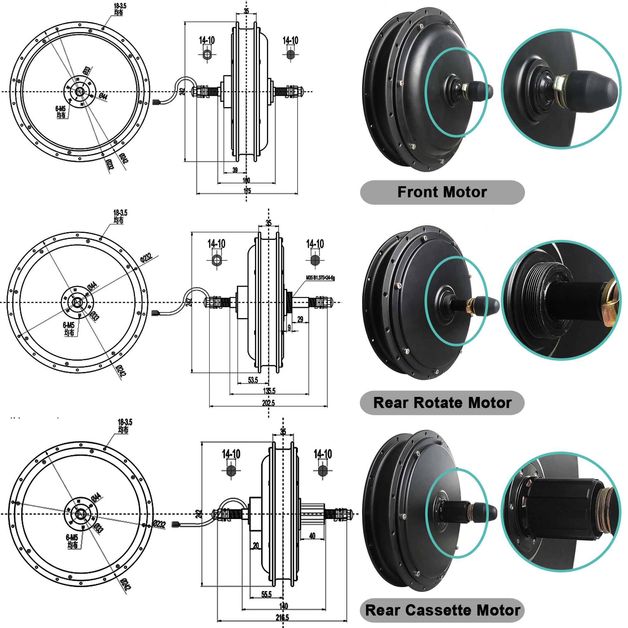 2.Стабильная приводная система, это моторное колесо, которое совместимо с дисковым тормозом и v-тормозом, имеет номинальную мощность 1000 Вт/1500 Вт, обеспечивая идеальную мощность для транспортных средств. Сильный и эффективный, этот двигатель значительно повышает комфорт при езде и подходит для поездок на велосипедах, пригородных велосипедах и горных велосипедах.