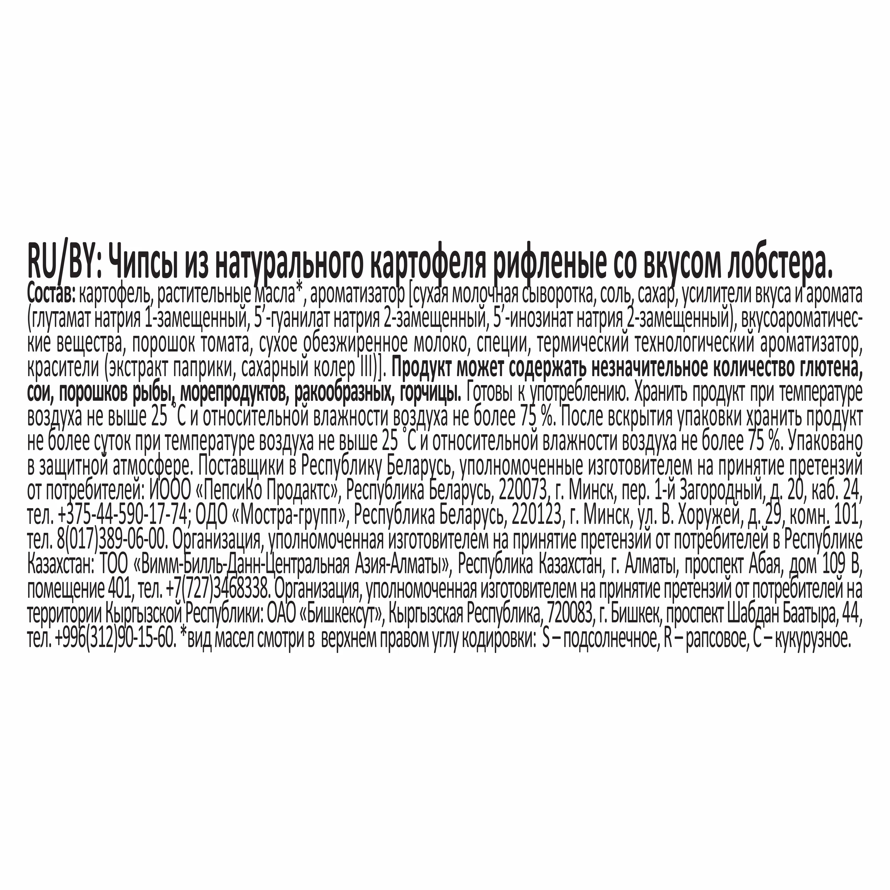 Изысканный вкус омара и нежно-рифленых, золотистых кусочков отборной картошки! Восхитительное сочетание оригинальной формы любимых чипсов LAY'S® и потрясающе нежного нового вкуса не оставит равнодушным даже самого искушенного гурмана.