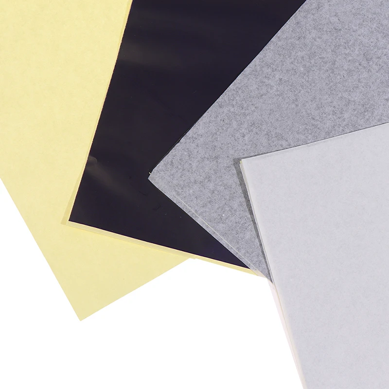 Копировальная бумага может быть использована по любому дизайну/изображению для отслеживания точной копии. Здесь поломка, что каждая часть 4-слойные Бумага делает: