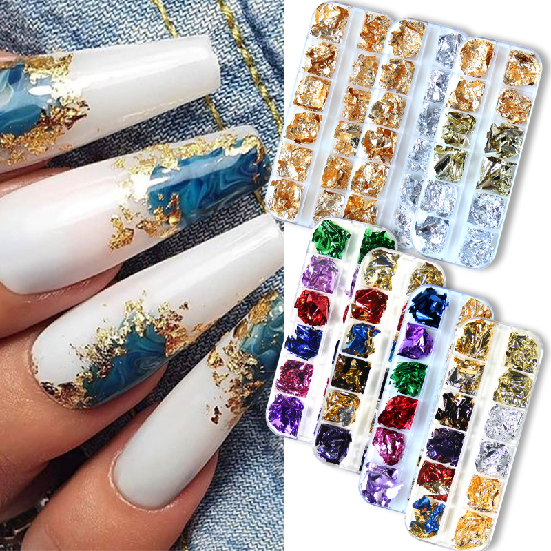 12 решеток из алюминиевой фольги для ногтей Блестящие Блестки хлопья неправильная фольга бумага УФ Гель-лак для художественное оформление ногтей Сделай Сам маникюр