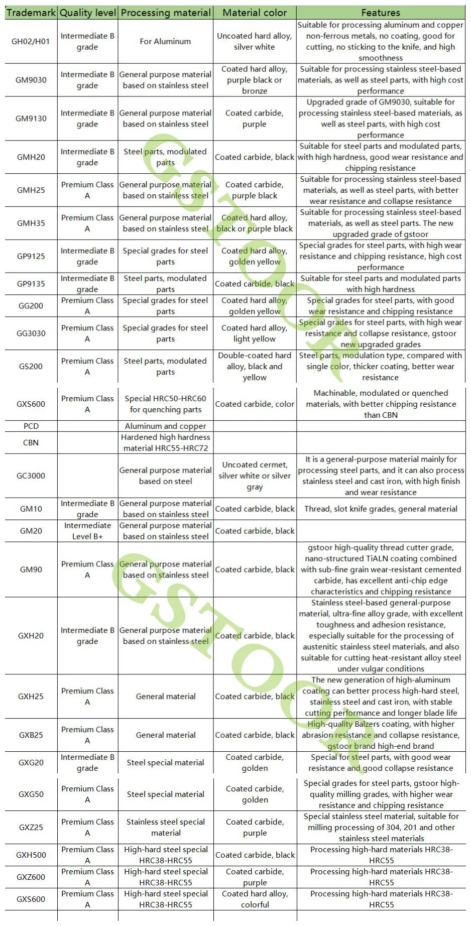 GM9030: подходит для обработки материалов на основе нержавеющей стали, а также стальных деталей, с высокими эксплуатационными характеристиками