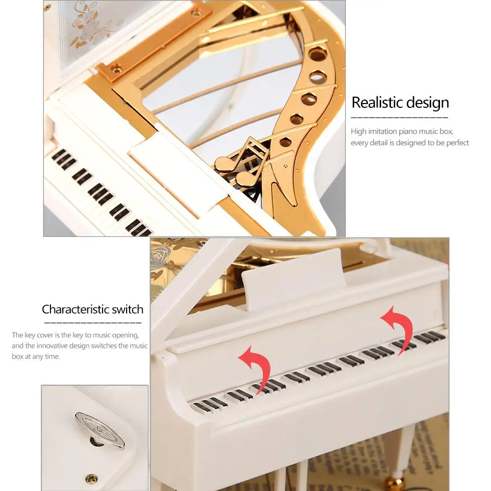 Романтическая классическая модель пианино танцевальная балерина Музыкальная шкатулка заводные музыкальные коробки подарок на день рождения и свадьбу украшение дома Особенности: Классическая Ретро мелодия, Наслаждайтесь приятным отдыхом. Оригинальный уникальный дизайн, изысканный внешний вид, креативный орнамент. Изысканная работа, отсутствие электричества, защита окружающей среды. Характеристики: Материал: пластик + металлический компонент Размеры: 13X12X16 см/5,12X4,72X6,3 "(Д X Ш X В) Количество примечаний: 8 Цвет: белый, розовый Упаковка: цветная коробка Использование: поверните часовой механизм музыкальной коробки, а затем откройте верхний чехол. Он будет играть четкую и Приятную музыку. Танцевальная балерина будет танцевать, следуя музыкальному ритму. Теплые советы: При использовании музыкального ящика, пожалуйста, не форсируйте остановку или ручную интервенцию, чтобы избежать повреждения, и не чрезмерно прикладывайте силы при запуске механизма обмотки. Прекратите сгибать, когда почувствуете сопротивление, чтобы не повредить движение! Примечания: 1. Песня музыкальной шкатулки в случайном порядке для Elise и City of sky. 2. Из-за различных эффектов монитора и светильник фактический цвет изделия может быть светильник, значительно отличается от цвета, показанного на фотографиях. Спасибо! 3. Возможны отклонения в 1-3 мм вследствие измерений вручную.
