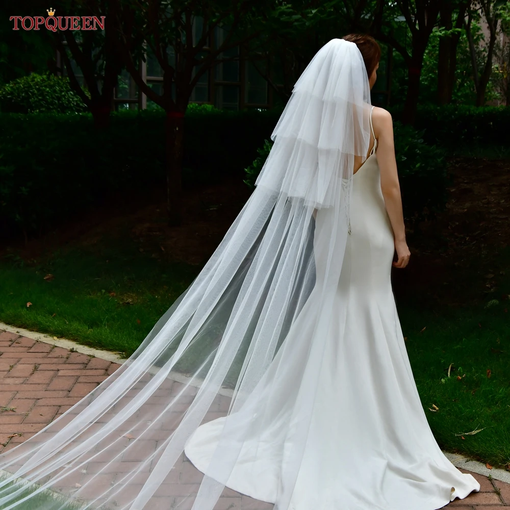 TOPQUEEN V27 3 уровня вуаль для невесты ручной работы супер мягкая горячая Распродажа свадебная вуаль свадебные аксессуары; Фата из тюля прозрачная