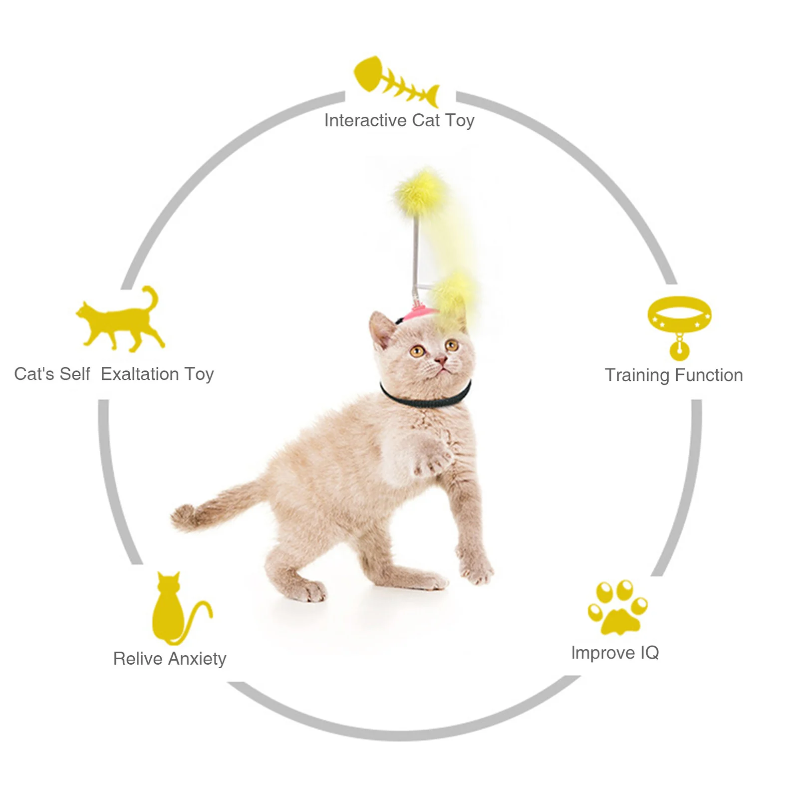 1. Игрушка для домашних животных: Этот продукт-забавная игрушка для кошек, с которой можно играть. Изделие фиксируется на голове или шее кошки эластичным крючком и петлей. Кошка использует высокоэластичную пружину, чтобы сделать верхние перья продукта нерегулярно качающимися во время деятельности. Для привлечения внимания кошки.