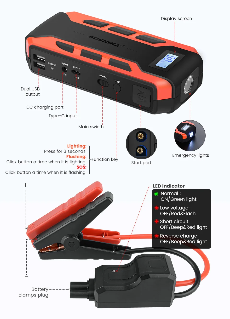 ★Полная защита: усовершенствованные смарт-хомуты с искровой технологией и 7 встроенной защитой. Внутренние литий-ионные клетки имеют сертификаты UL, RoHS и CE. Оба эффективно защитят Вас и ваш автомобиль от потенциальной опасности.