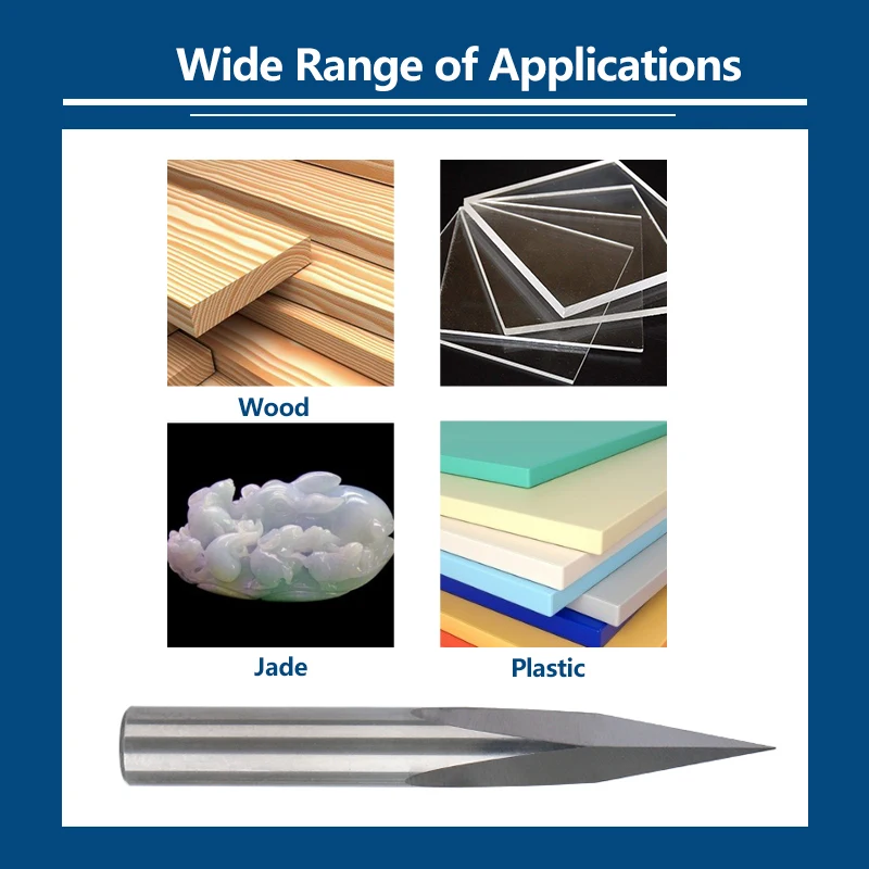 Применение:Большинство пластмасс, меди, алюминия, железа, нефрита и других твердых материалов для гравировки и резки тонкого, акрила, ПВХ, нейлона, смолы, дерева, фанеры, лиственных пород, стекловолокна, мрамора и т. д.
