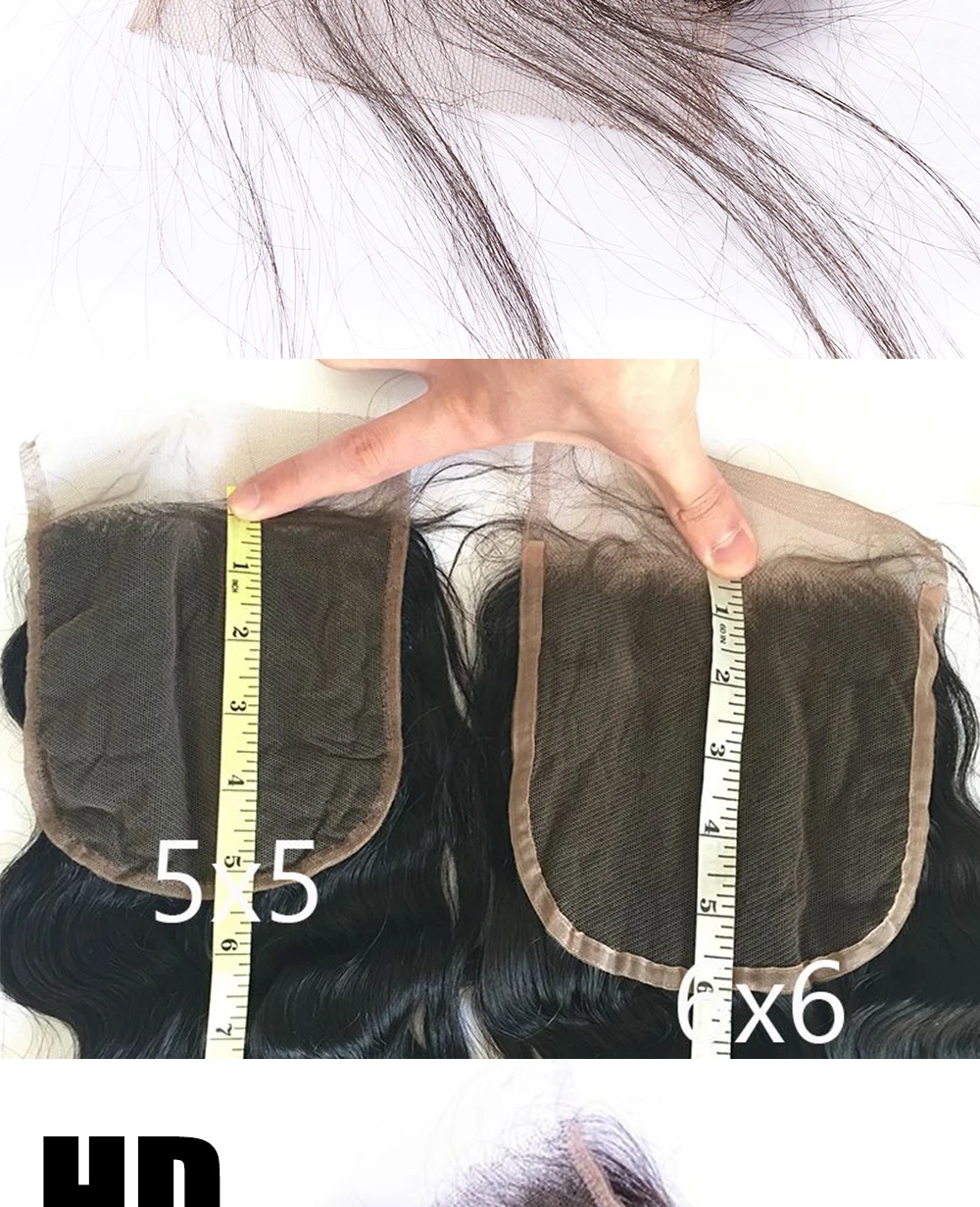Волнистые невидимые бразильские человеческие волосы 5x5 6x6 HD с застежкой на сетке