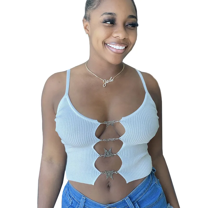 Горячая сексуальная открытая спина Спагетти ремень Тощий камзол y2k белый жилет