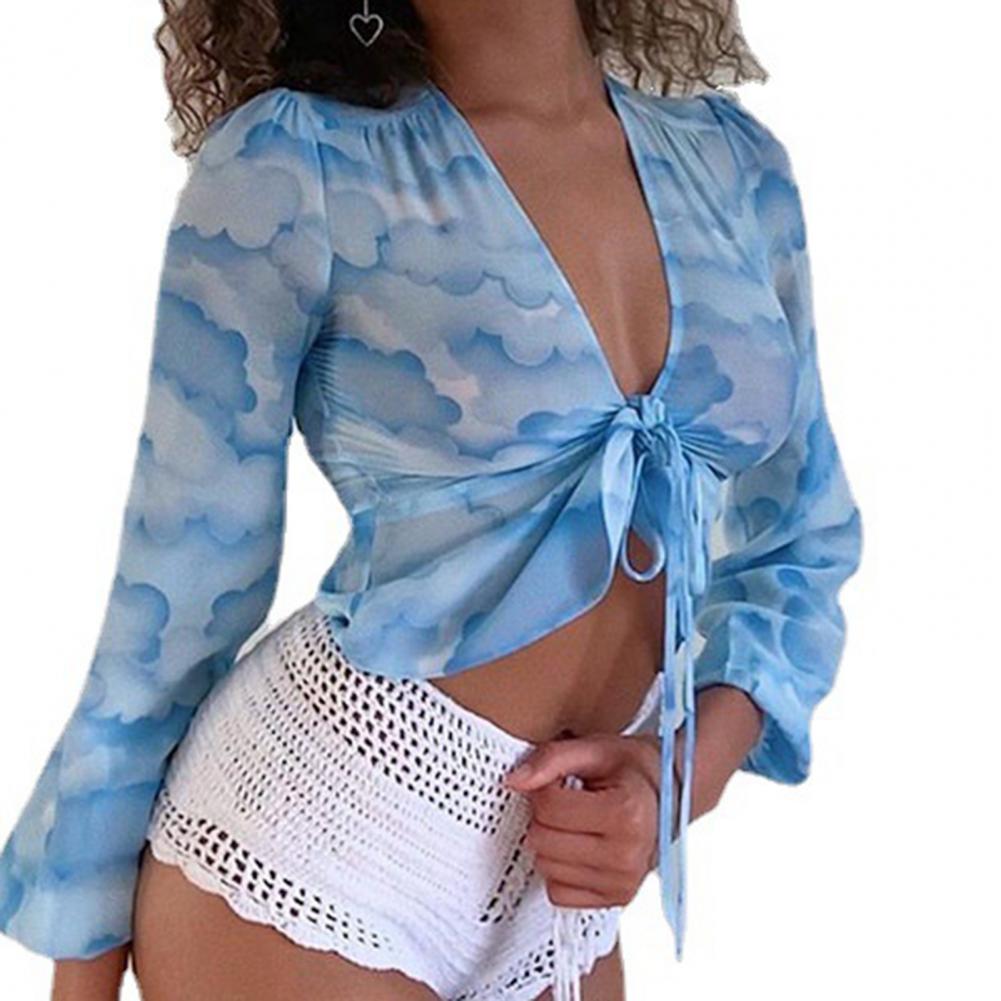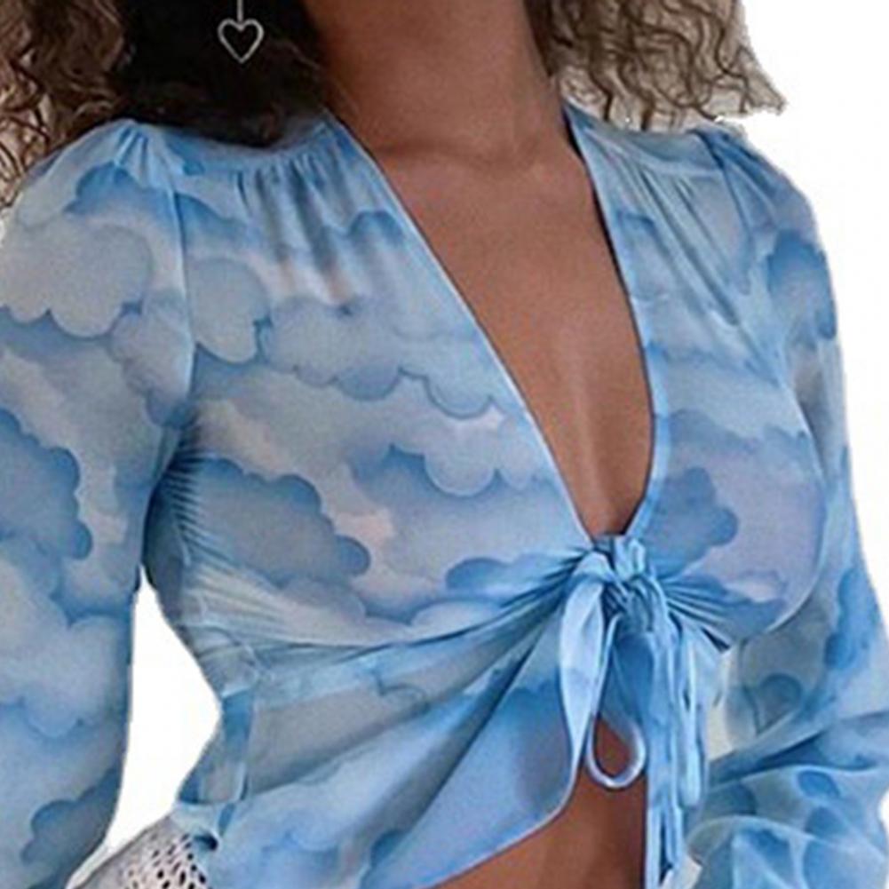 Облачная печать и цветочный принт делают эту блузку очень модной. Рукава фонаря делают его дизайн очень уникальным.