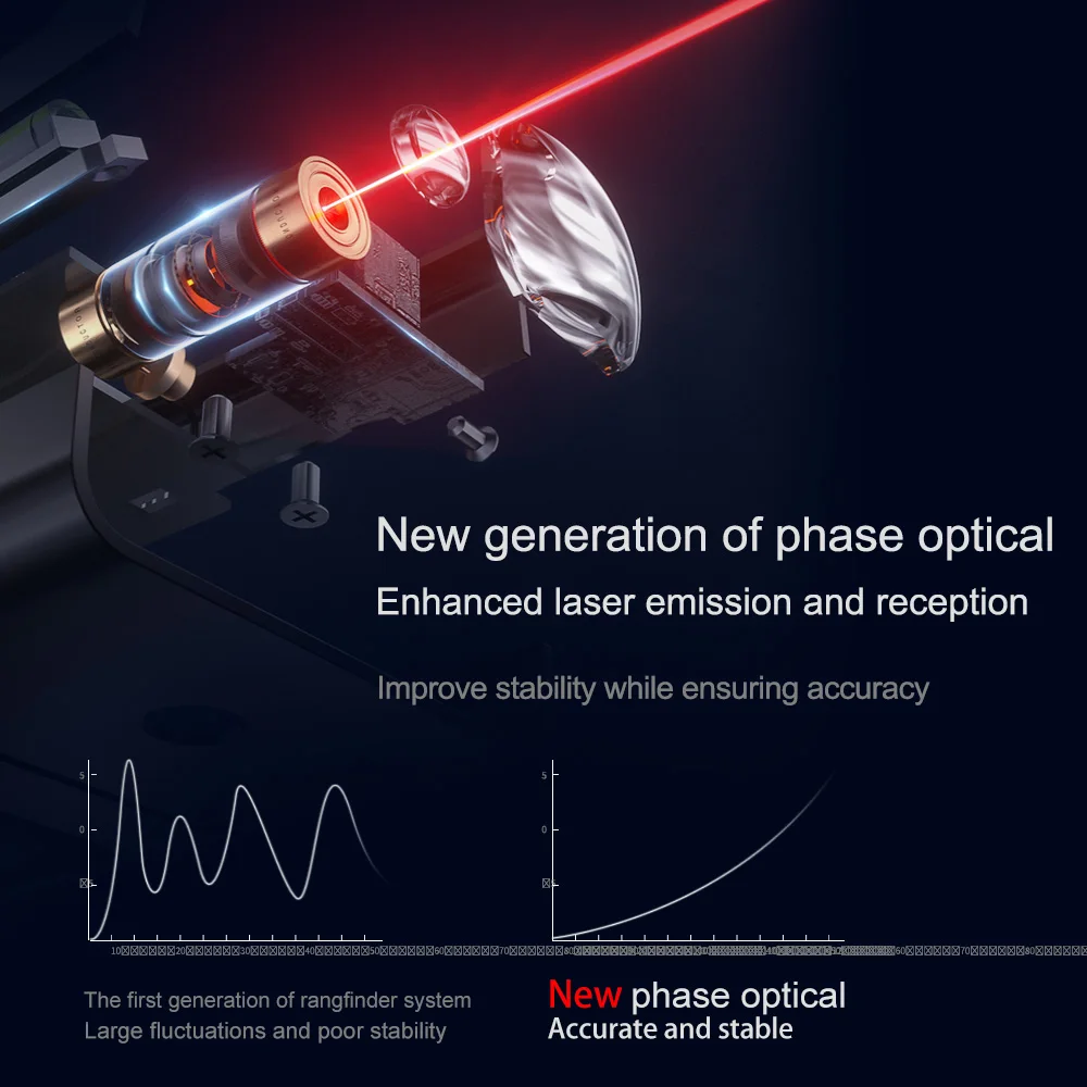 Точность миллиметра-Оснащен модернизированным чипом и объективом, Этот измеритель обеспечивает стабильное и точное измерение с точностью ± 3 мм и дальностью измерения 60 м.