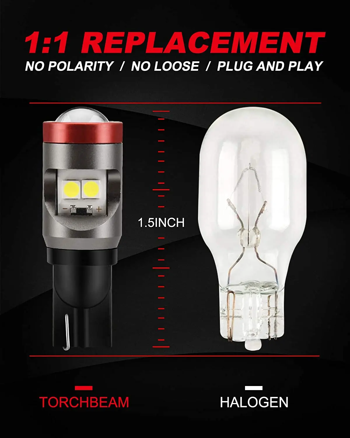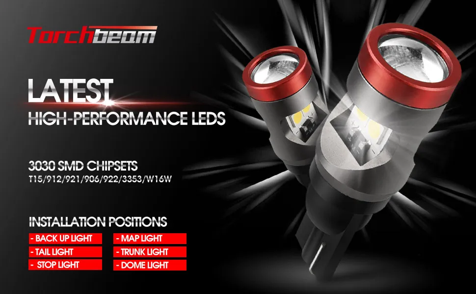Torchbeam 912 921 светодиодный светильник T15, резервный светильник, чрезвычайно яркий 3030 SMD Chipsets, безошибочный 906 W16W для заднего тормоза, стоп-сигнал, светильник s 6000K, ксеноновый белый (упаковка из 2)
