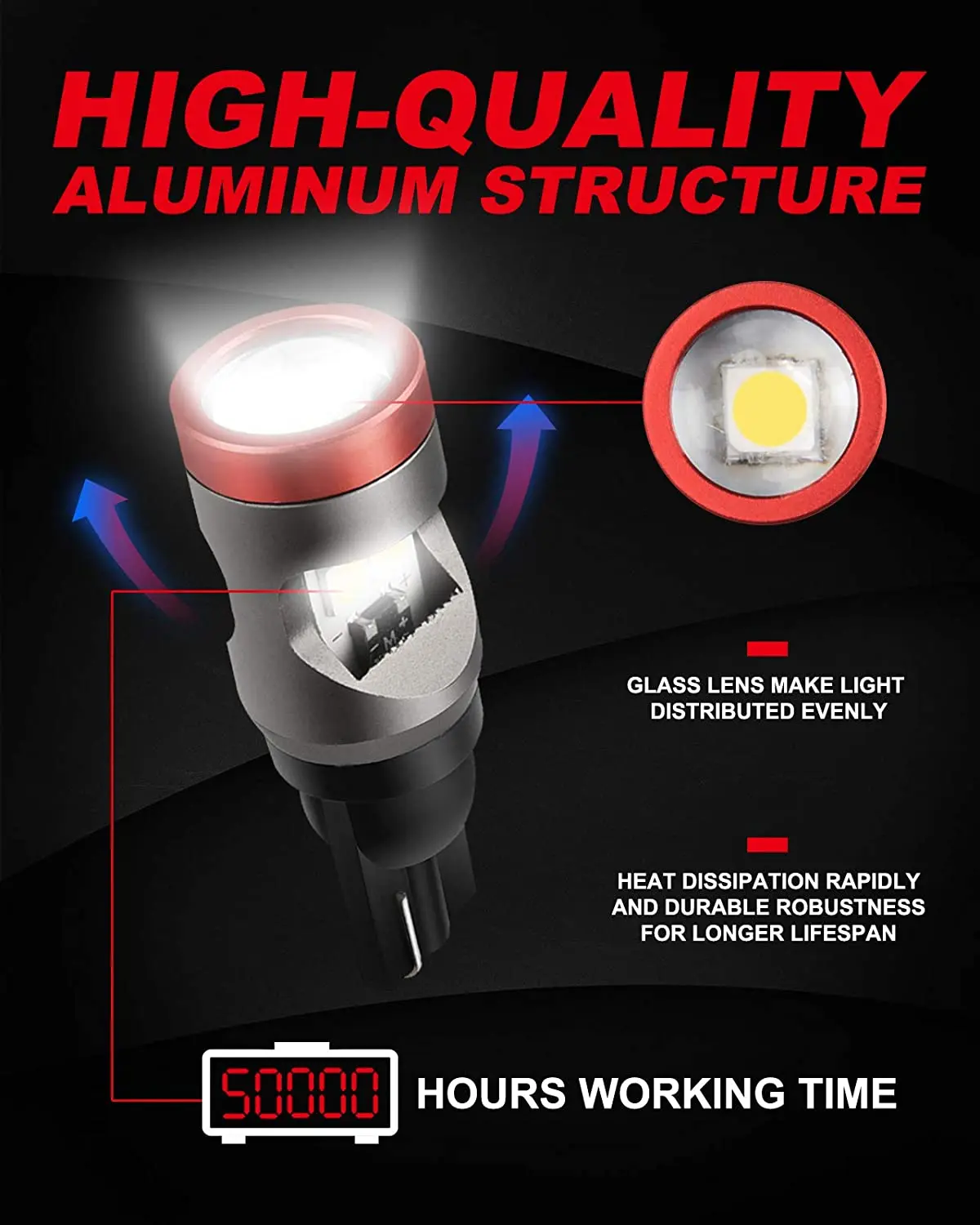 Обе стороны яркие и не требуют дополнительного переворачивания или модификации, изготовлен из авиационного алюминия и надежное соединение для лучшего рассеивания тепла и более длительного срока службы · идеальный Рисунок луча: оригинальный отражающий дизайн фокусирует светильник на Точечный светильник, мини-проекторы обеспечивают режим освещения и лучший режим узкого луча для дальнего освещения · Замена для: 906, 902, 904, 912KX, 912K, 921K, 921KX, 921LL, W16W, 912, 921,T15, просто подключи и работай без модификации, используется только для стоп-сигналов заднего хода · Примечание: для некоторых европейских и американских транспортных средств вам может потребоваться 50 Вт 6Ohm нагрузочный резистор для фиксации hyper flash issuesTXT ·