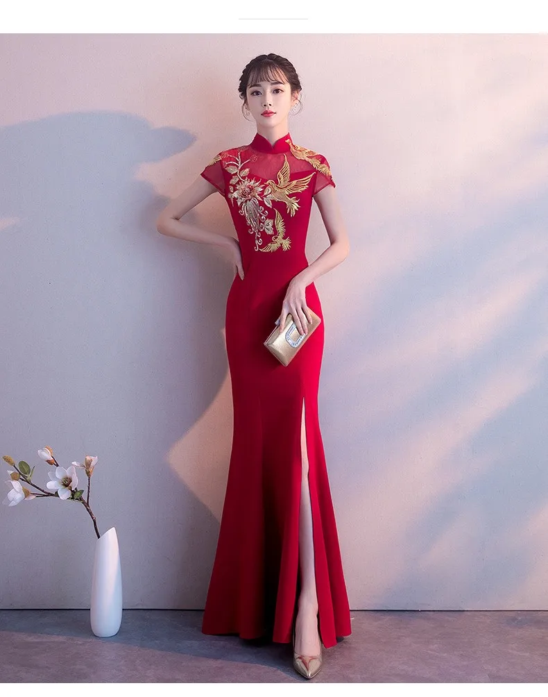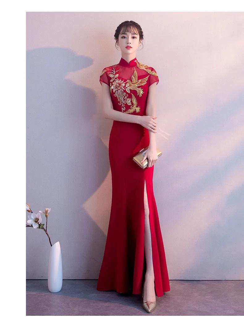 Вечернее платье со стразами 2020 новое красное вечернее для невесты свадьбы
