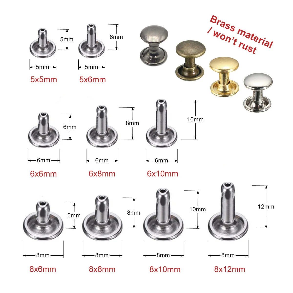 8x 6 мм/8x 8 мм/8x10 мм/8x12 мм